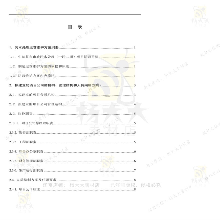 📚 中部某市污水处理厂运营维护方案119页 污水运营维护方案资料