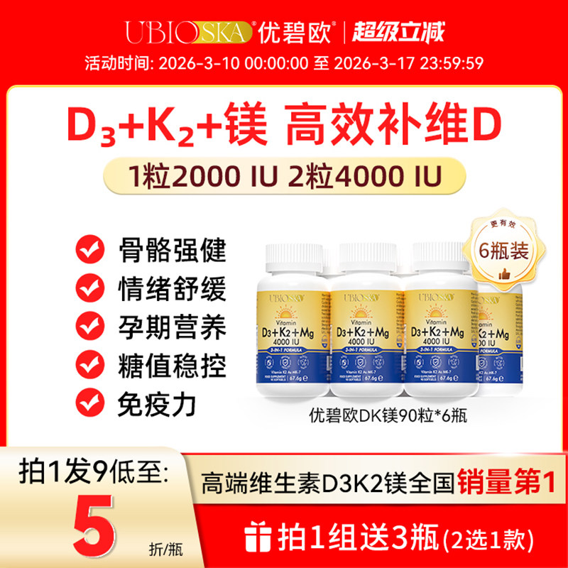 📚 [直播]UBIO优碧欧维生素d3k2镁三合一d3k2镁成人阳光维生素vd*6瓶