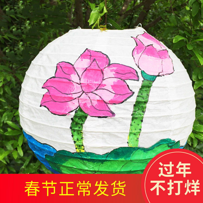📚 儿童绘画白色灯笼端午节纸灯笼diy涂色幼儿园材料直径20/25/30cm