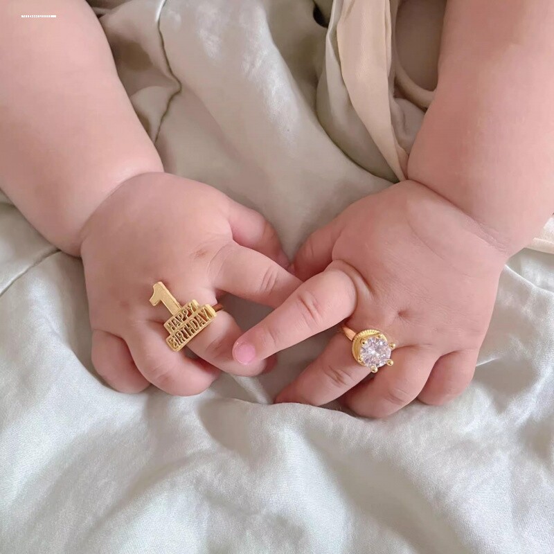 📚 黄金色儿童宝宝戒指婴儿指环满月百天周岁食指戒新年礼物