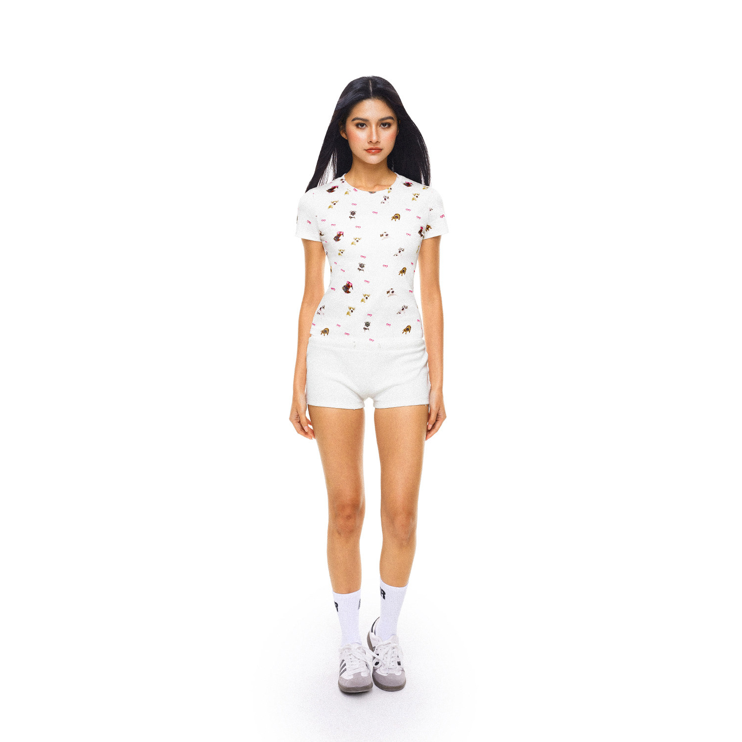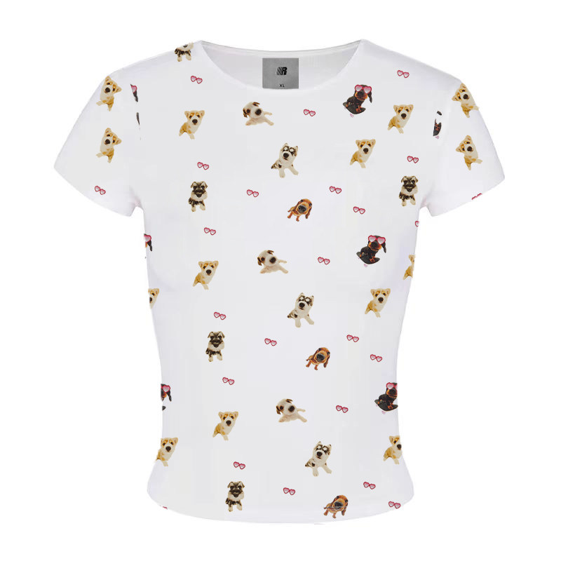 📚 FDR官方店 美式辣妹小狗印花短袖T恤女夏季修身显瘦圆领体恤上衣