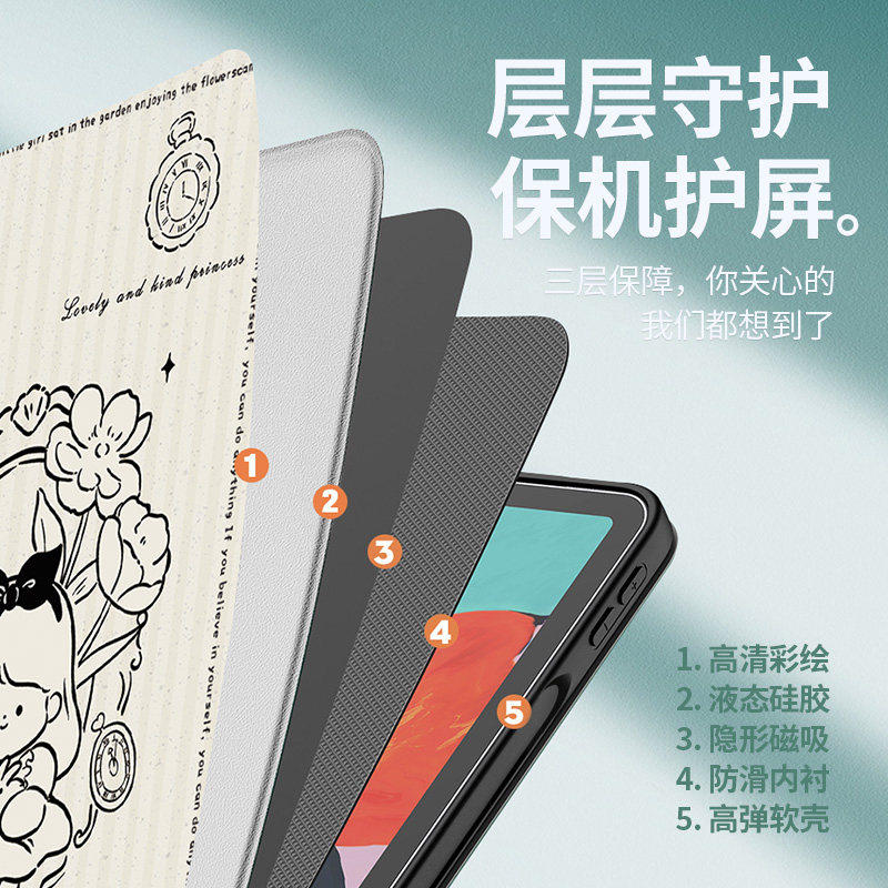 📚 花园女孩适用苹果iPad保护套2022新款ipadair5平板壳2020ipadpro全包mini6带笔槽2019卡通3仿皮air4磁吸4防摔