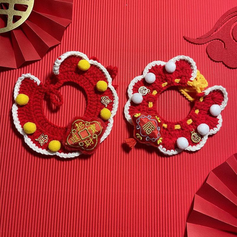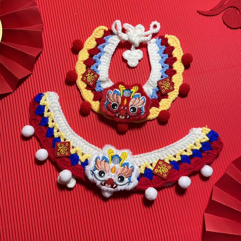 📚 新年马年醒狮猫咪项圈猫围脖过年装扮猫猫小猫衣服宠物口水巾过年