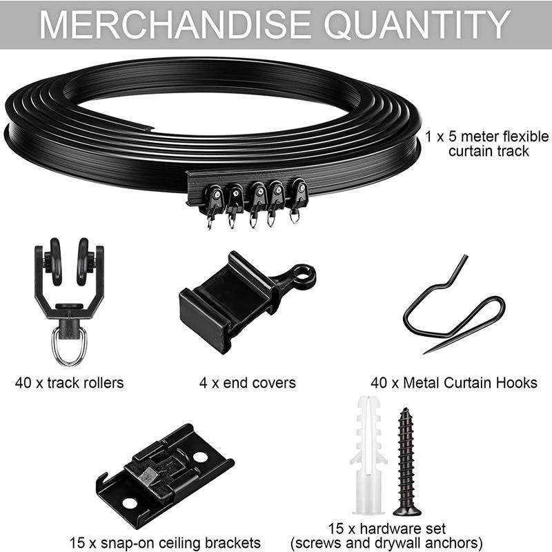 📚 5米黑色弯轨挂钩套装 可弯曲路轨轨道配件 窗帘支架轨道杆