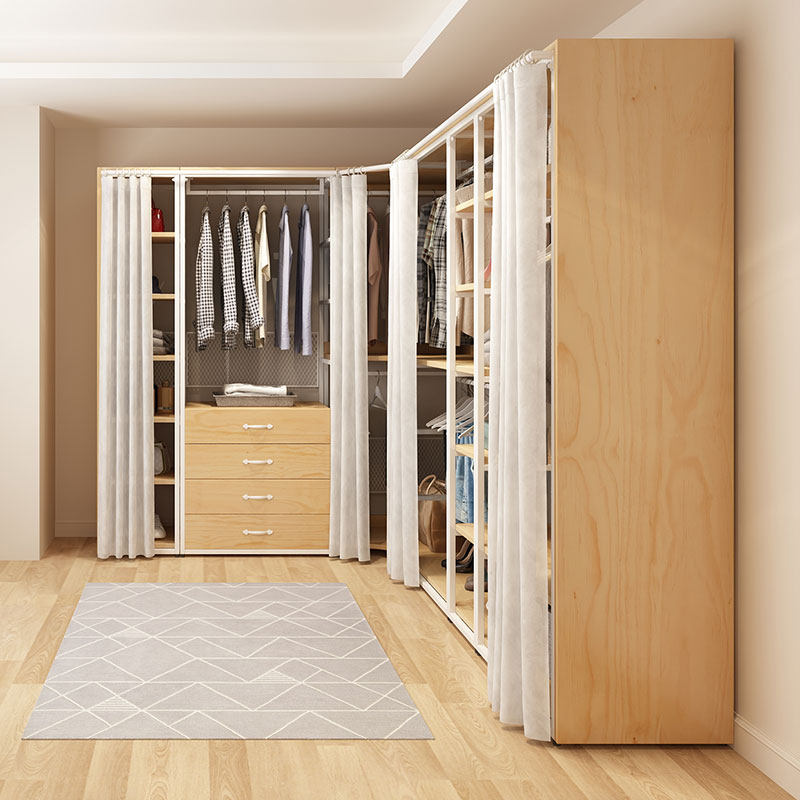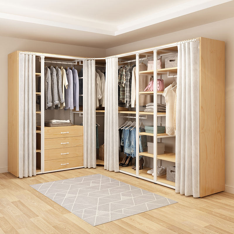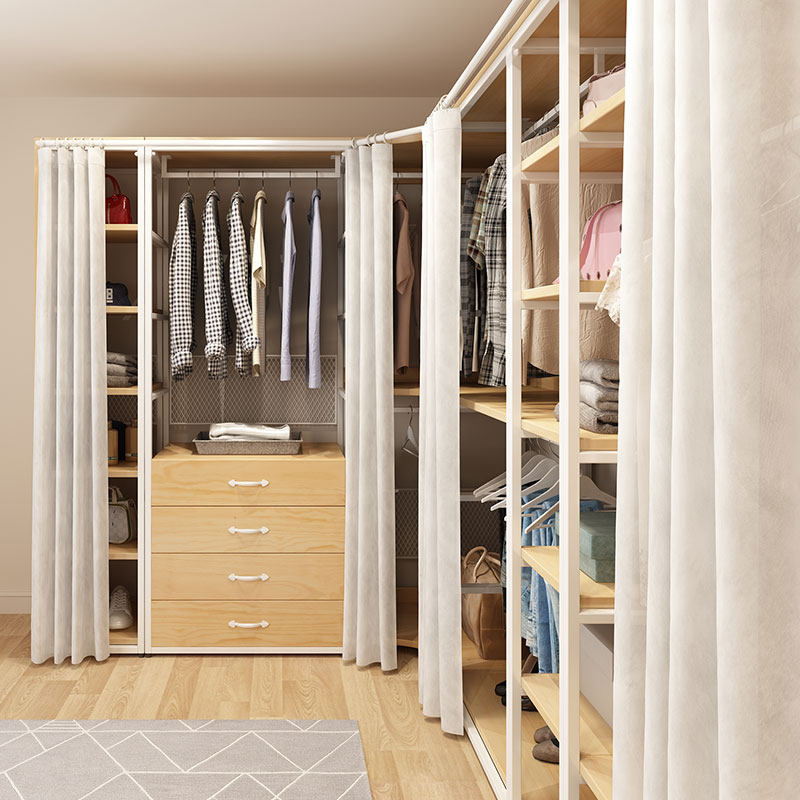 📚 步入式衣帽间柜子组合收纳实木铁艺衣架落地卧室开放式衣柜带帘子