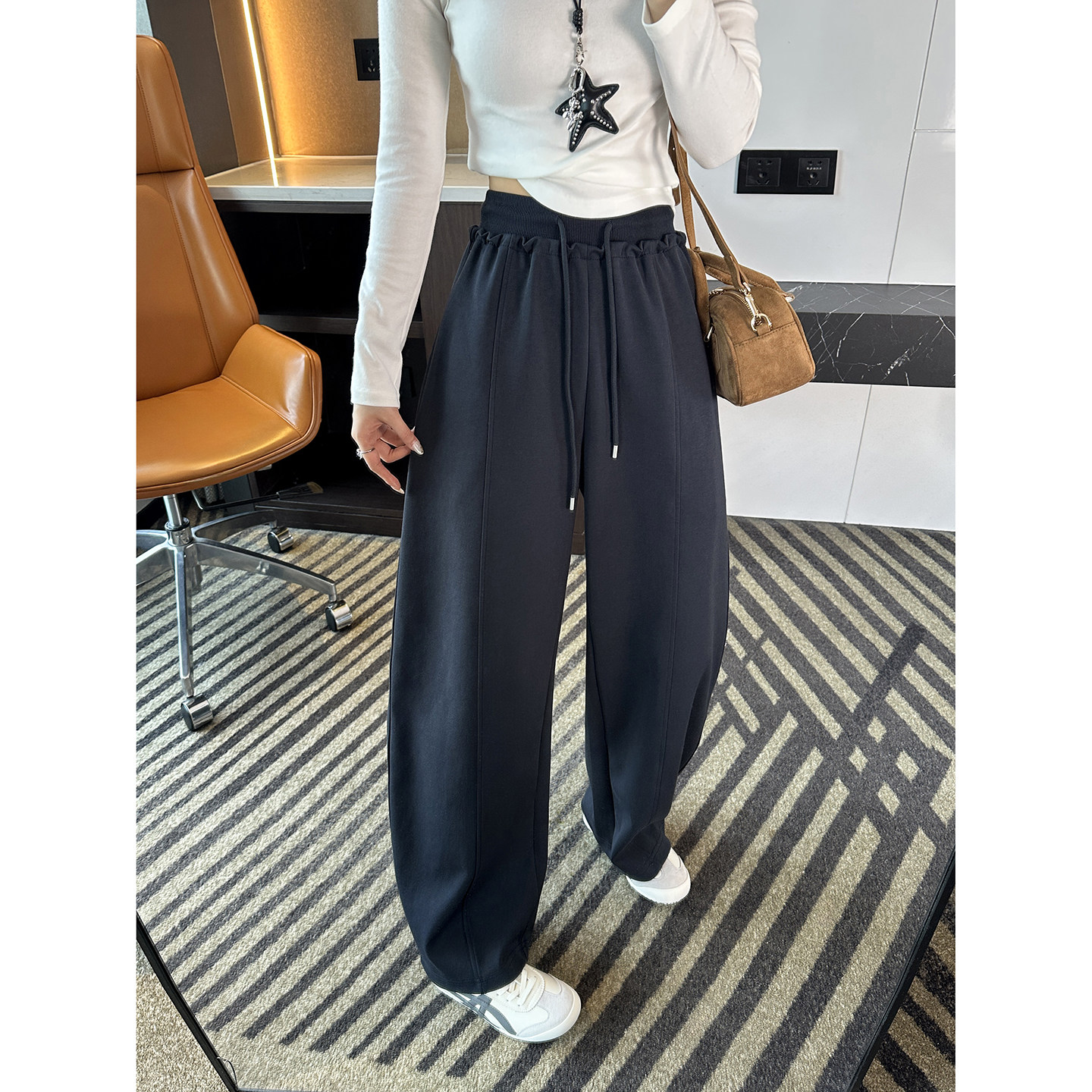 📚 舒服麻了!~天丝羊毛抽绳弯刀休闲裤子女新款春显瘦宽松阔腿长裤