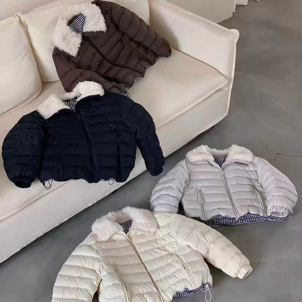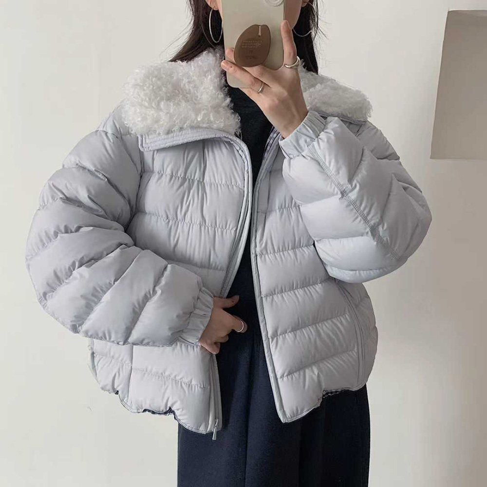 📚 羽绒服女短款2025新款羊羔毛翻领撞色设计小个子冬季宽松保暖外套