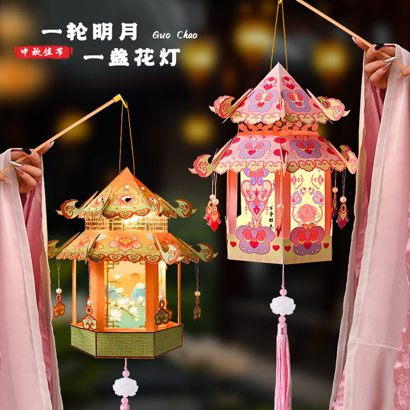 📚 中秋节灯笼手提花灯发光创意古风非遗手工制作diy材料包装饰宫灯