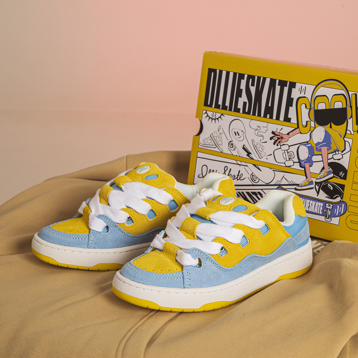 📚 顽刻ollieskate面包鞋蓝黄拼色多巴胺BAKE秋冬男女国潮滑板鞋