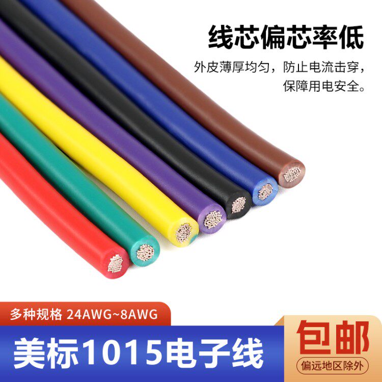 📚 1015电子线美标电线8/12/14/16/18/20/24awg导线引线镀锡铜电线
