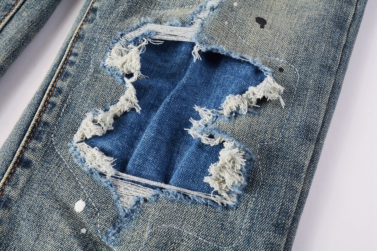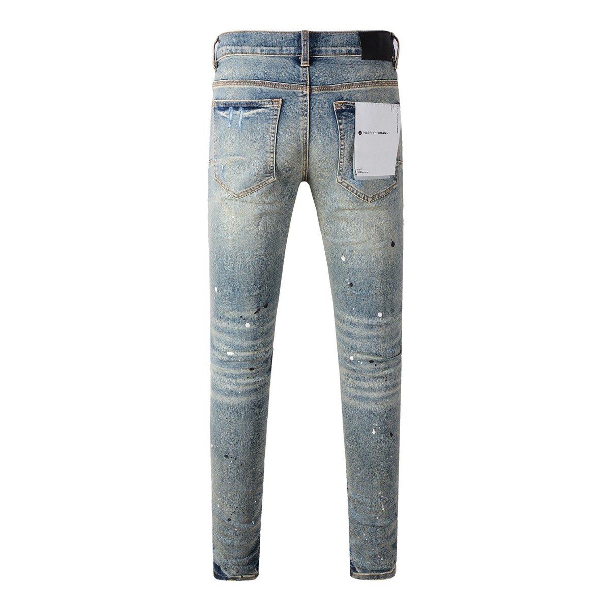 📚 PURPLE新款美式潮牌洗水破洞做旧拼布MX1弹力修身牛仔裤男高街ins