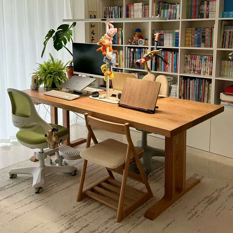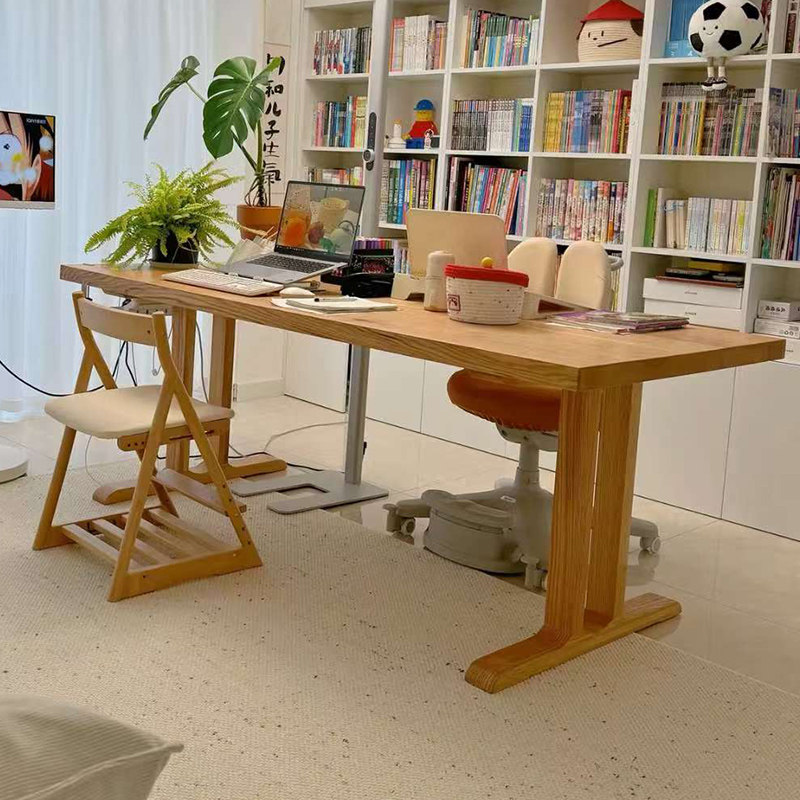 📚 实木客厅学习桌学生书桌白蜡木大板桌长条亲子学习桌工作台电脑桌