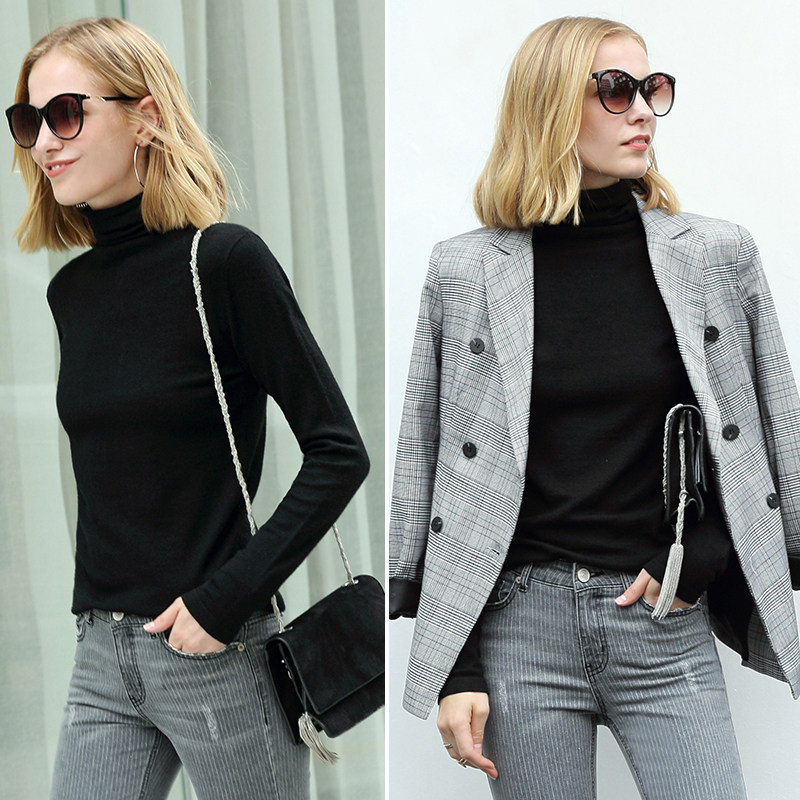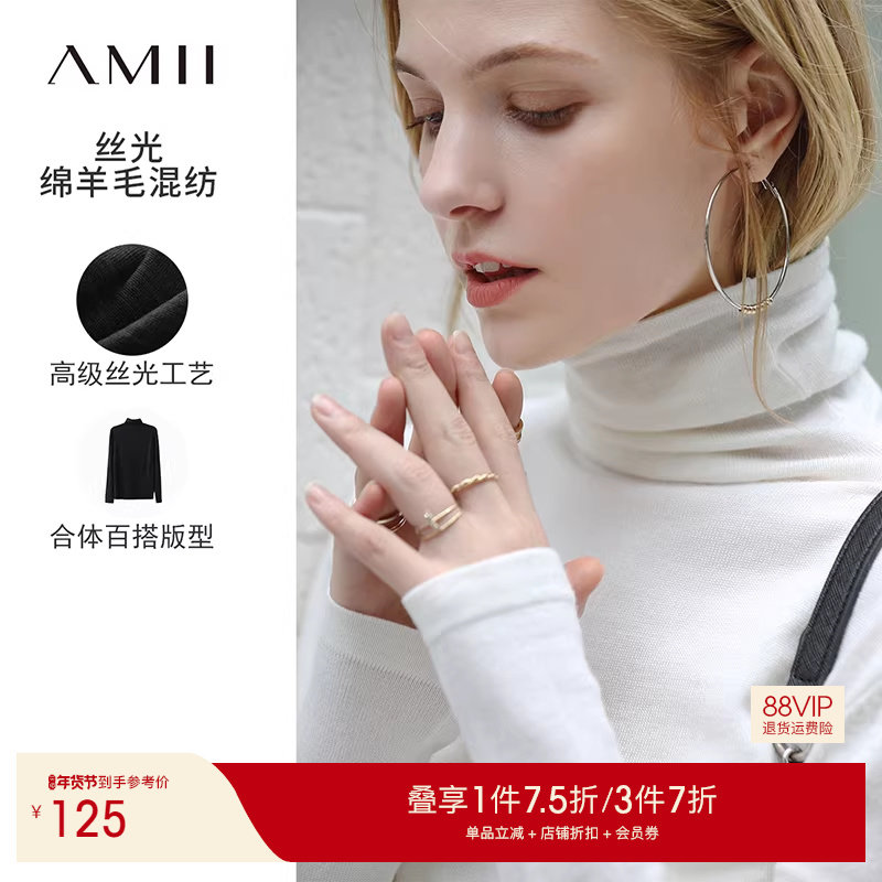 📚 Amii2025冬新款高级通勤风基础百搭显瘦高领丝光毛衣女内搭上衣
