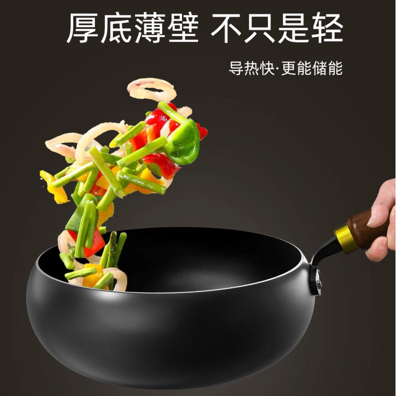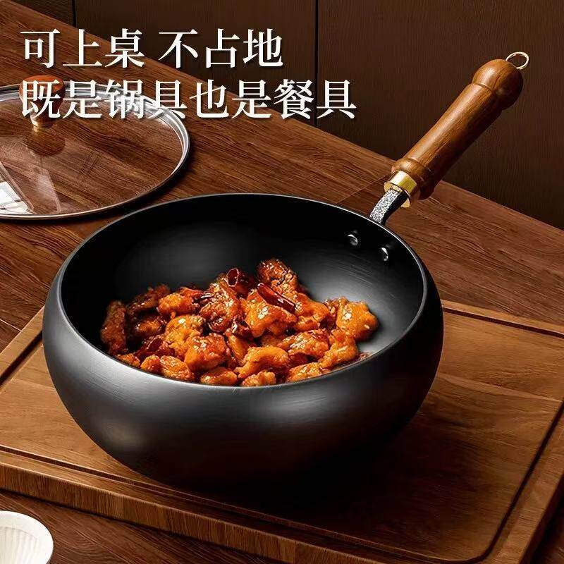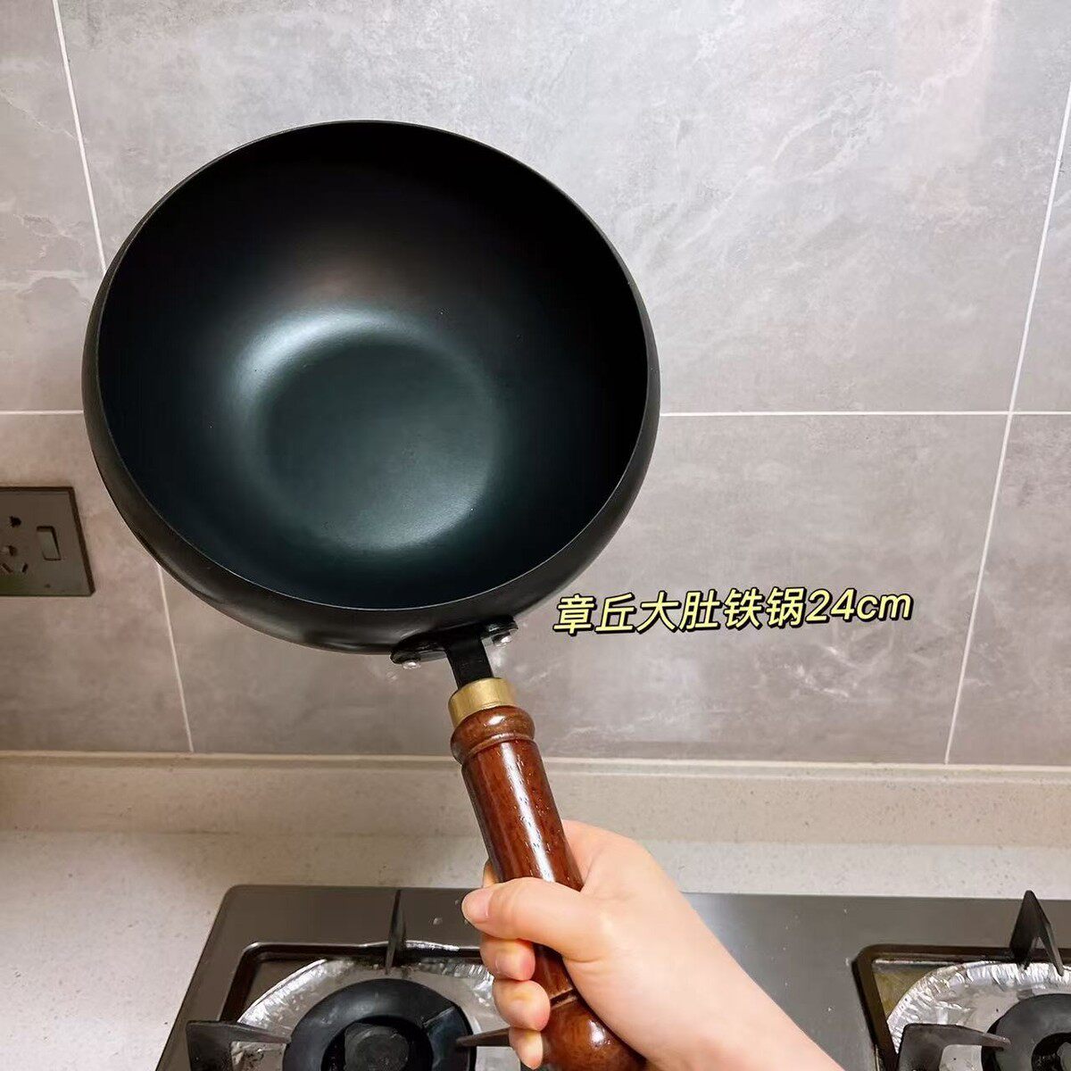 📚 三叔三婶大肚锅纯手工无涂层不粘家用炒锅加厚耐磨家用精铁平底锅
