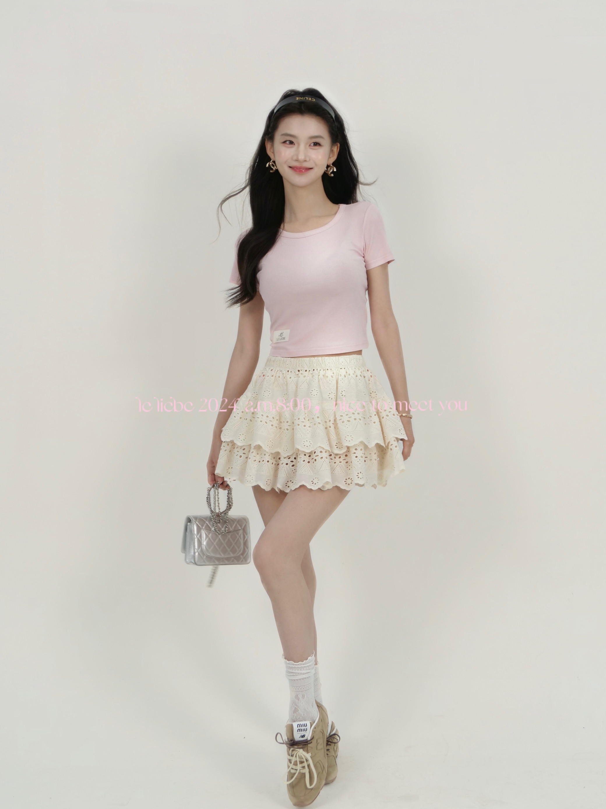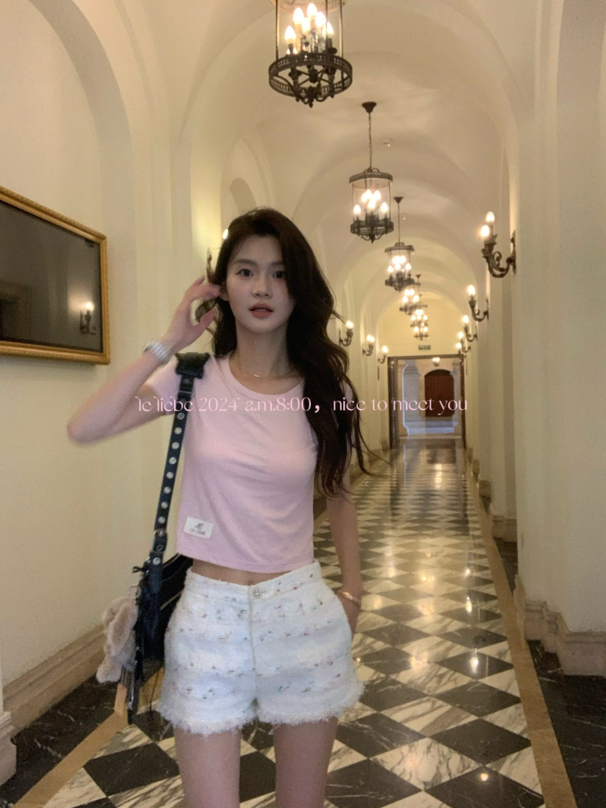 📚 LE LIEBE 江南美人 春夏超好穿!百搭纯色T 藕粉 圆领短款打底衫