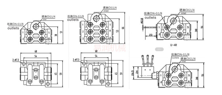 📚 锻压冲床机床递进式油路分配器油脂注塑机U型分油器2出口分配阀