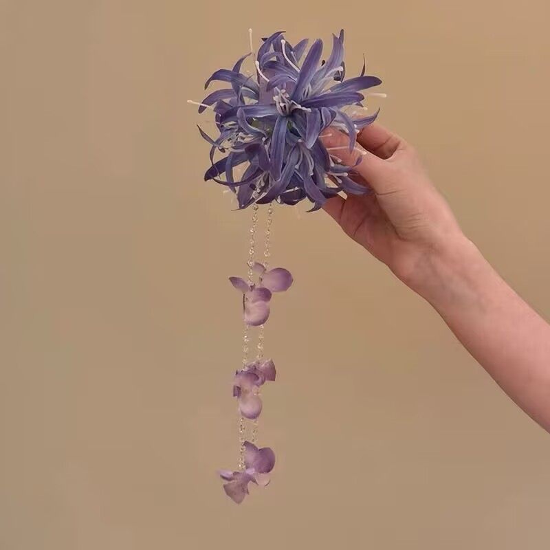 🎀首先说说这款流苏发夹,它的设计真的太有新意了!紫色调的绣球花与流苏元素的结合,瞬间提升了整个发型的精致度。每次戴上它,都能感受到那种独特的氛围感,仿佛置身于彼岸花盛开的世界。🌸