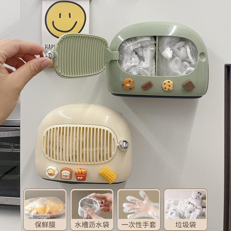 📚 一次性保鲜膜套罩收纳盒壁挂抽取式厨房家用过滤网盒子冰箱免打孔