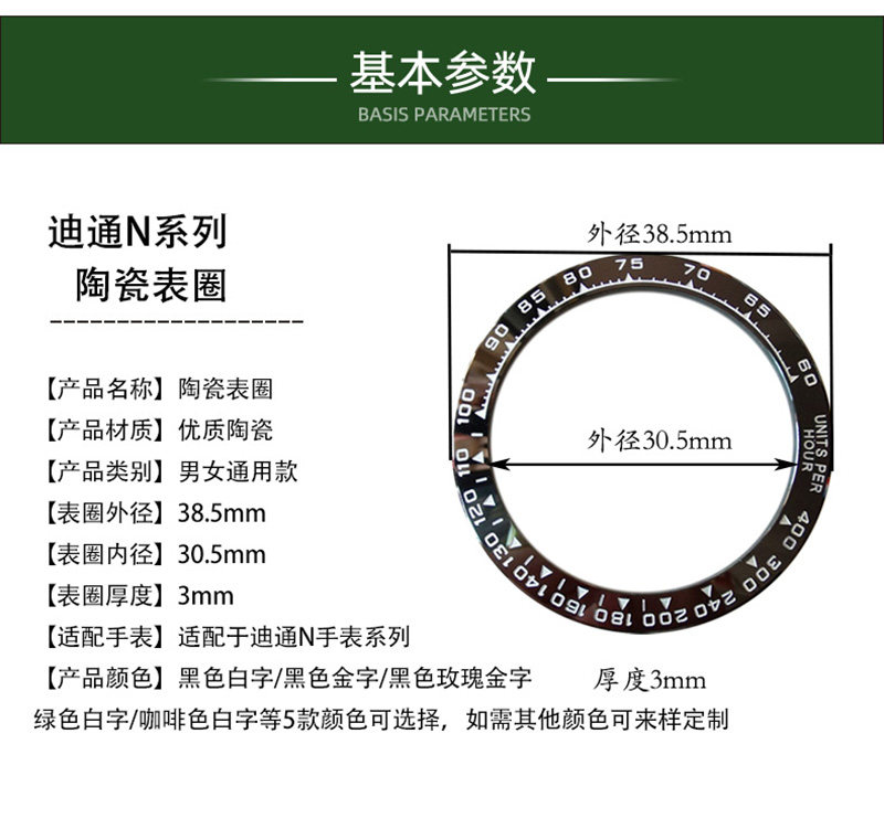 📚 手表配件陶瓷圈口适配迪通拿116500宇宙计型38.5MM数字外圈口配件