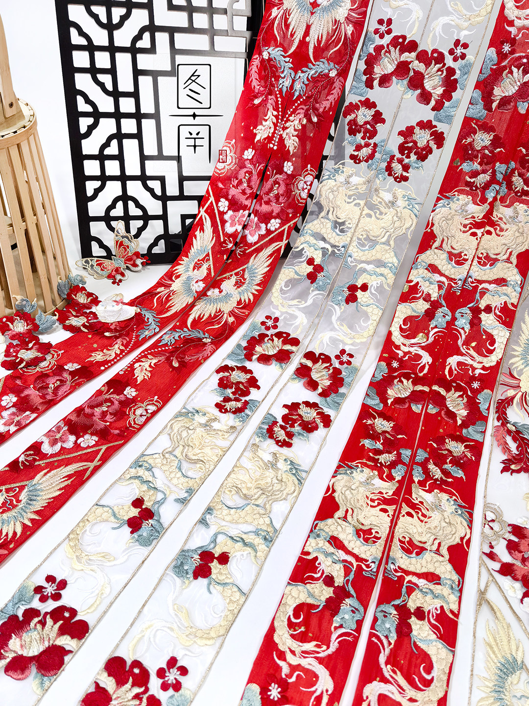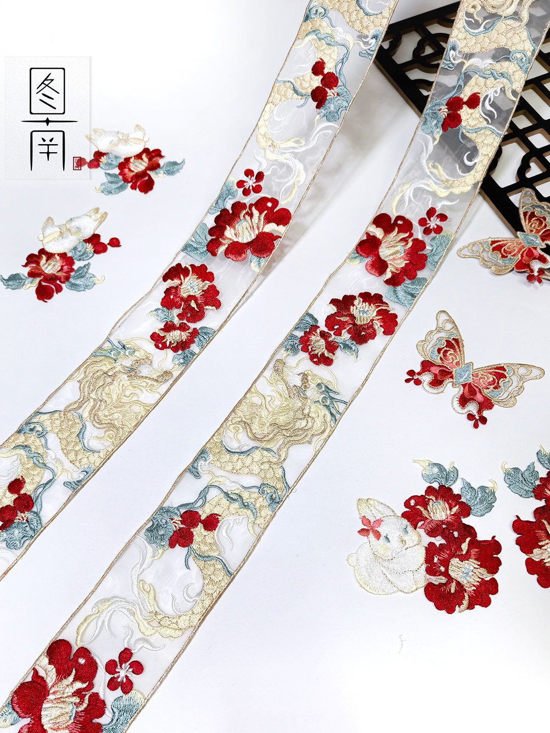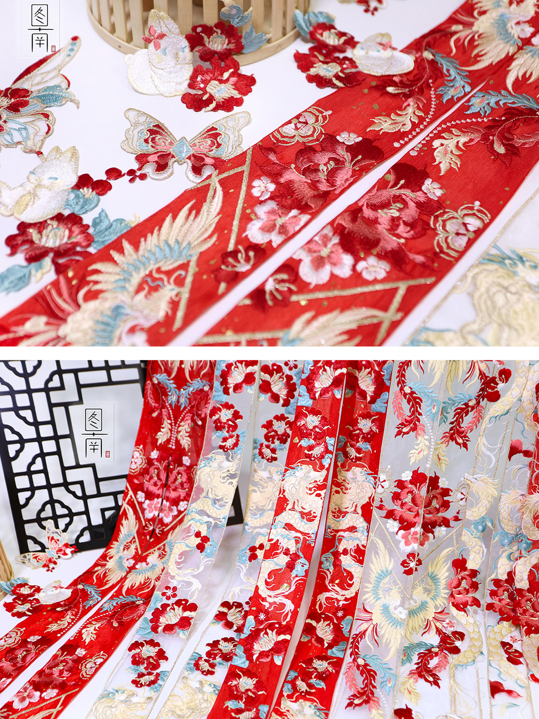 📚 绣花领口边条蕾丝辅料国风汉服领子龙凤刺绣窗帘纱花边刺绣边diy