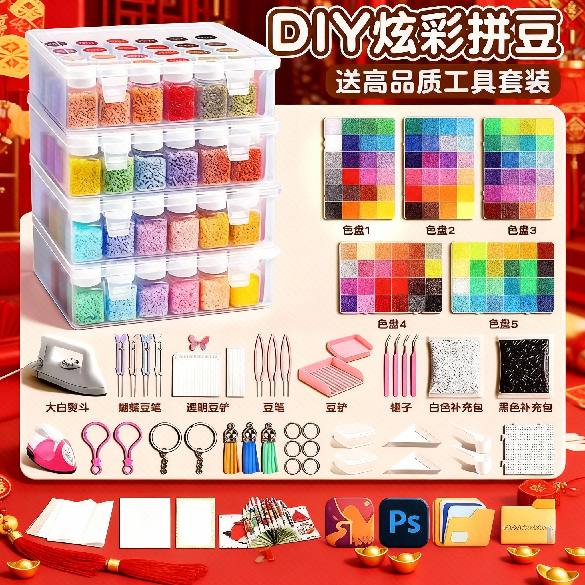 📚 拼豆材料包全套工具mard家手工diy儿童玩具补充包全自动拼豆笔女