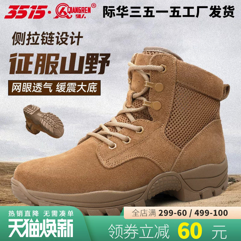 📚 际华3515强人夏季爆款透气网面中帮登山鞋户外徒步防穿刺工装靴