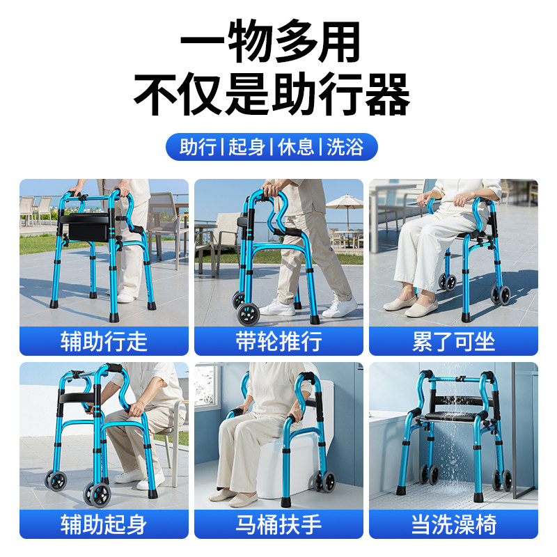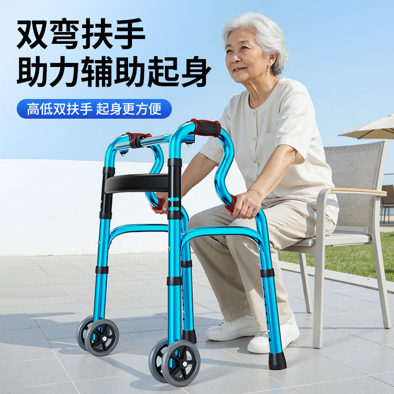 📚 雅德老人行走助行器病人腿脚不便防摔助步器可坐可折叠手扶手推车