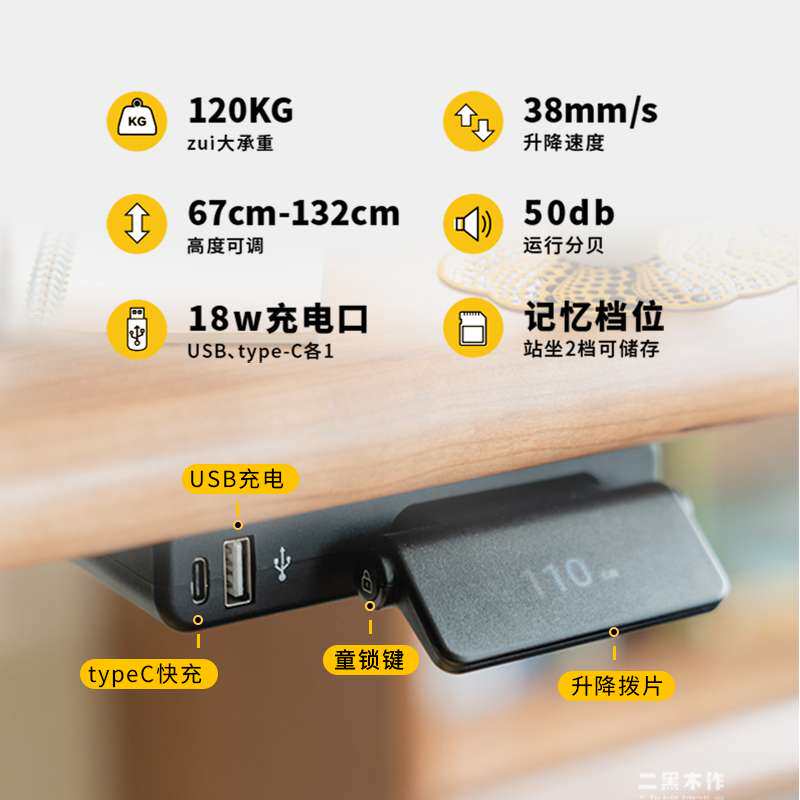 📚 #二黑木作 小海升降桌2代 实木电动升降书桌学习桌办公桌电脑桌