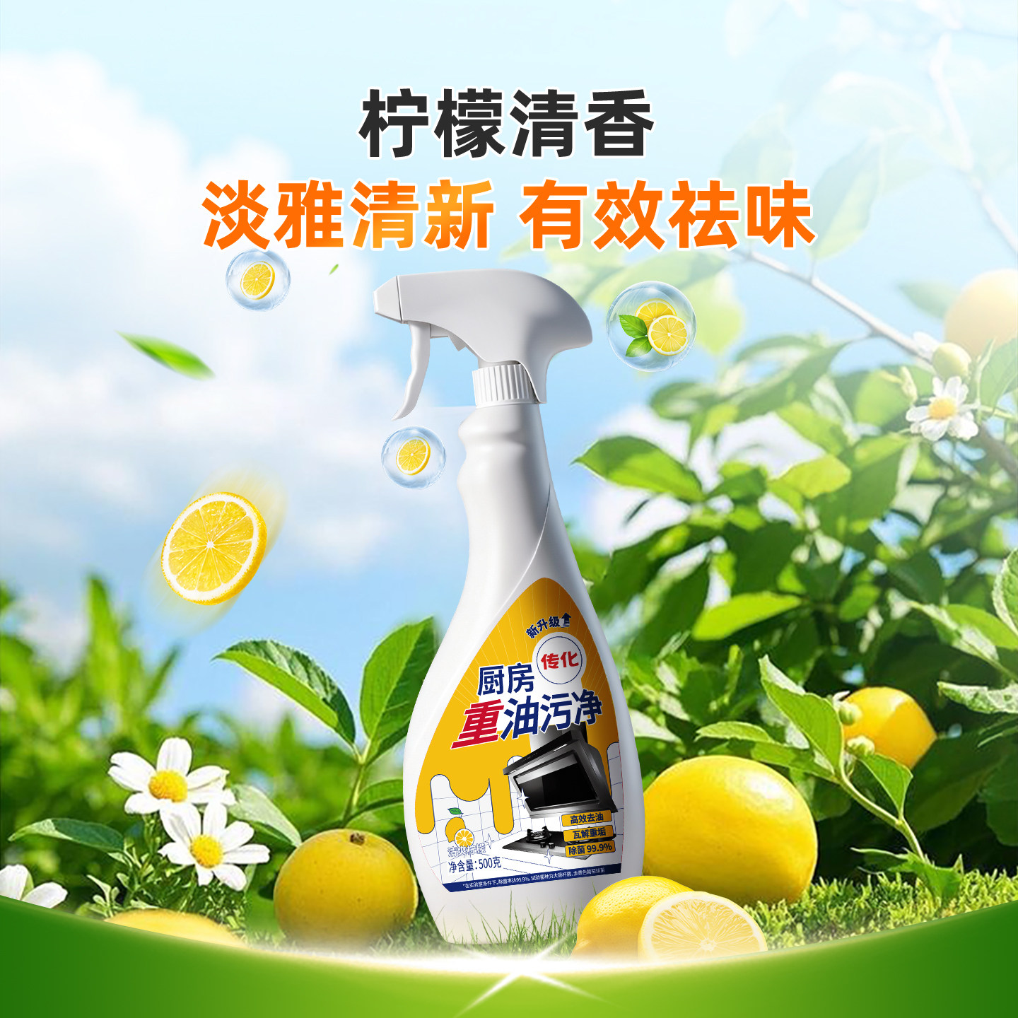 📚 传化厨房油污净 家用500g*2瓶装强力去除油污厨房清洁柠檬香型