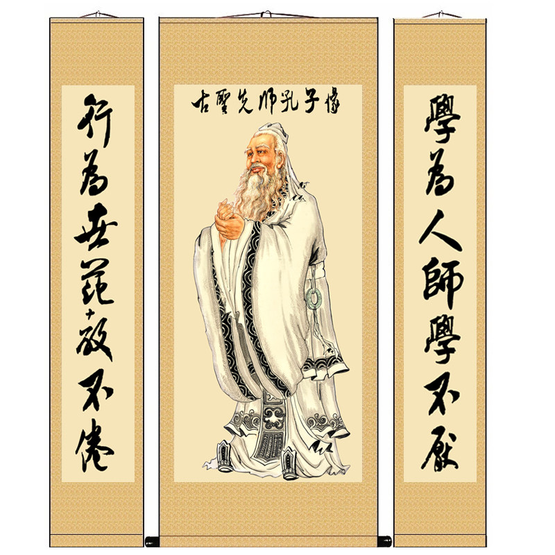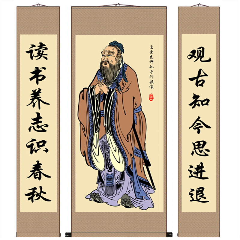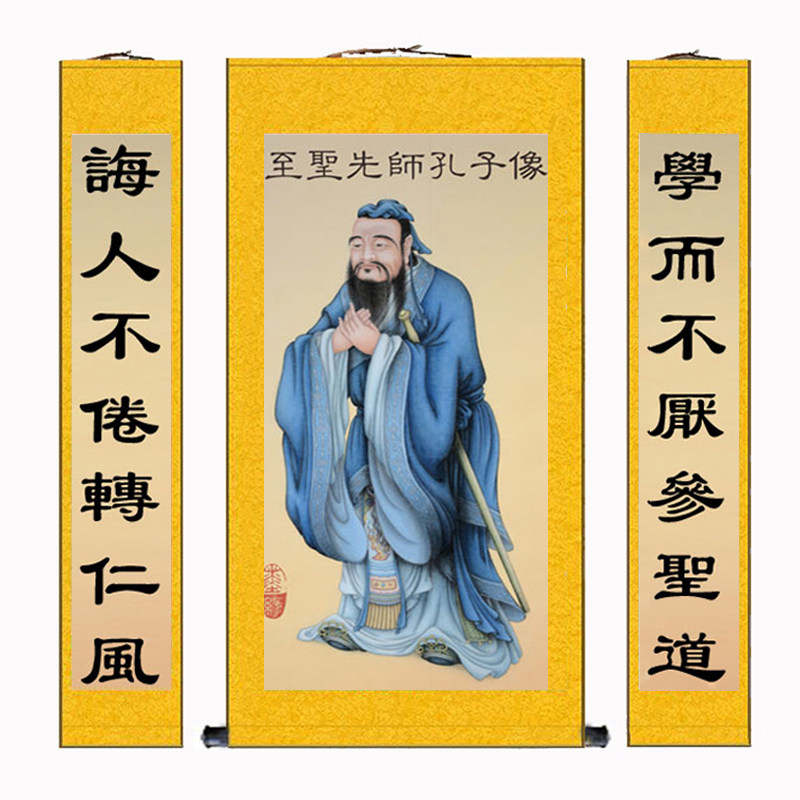 📚 国学馆古圣先师孔子像挂画孔圣人拜师礼画像学校教室丝绸卷轴供奉