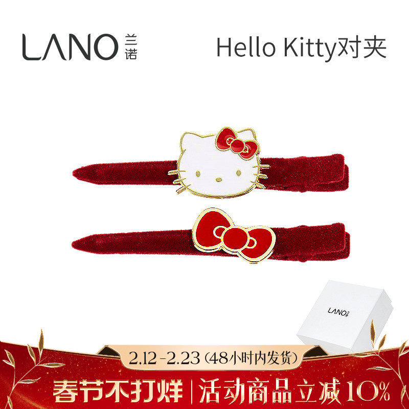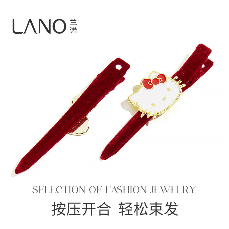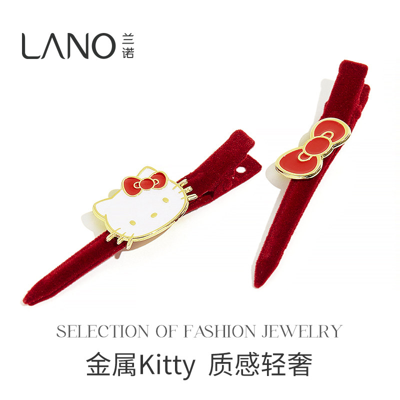 📚 兰诺HelloKitty正版授权红色丝绒新年发夹女2026新款高端侧边夹子