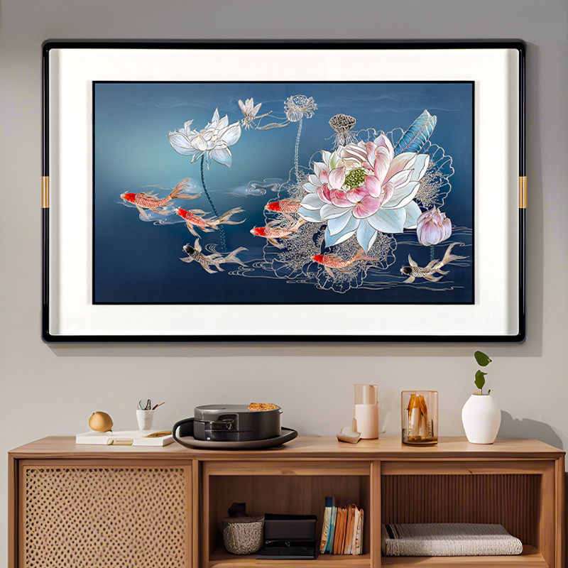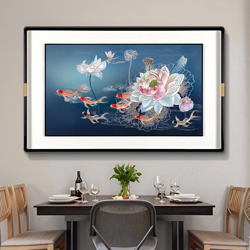 📚 新中式餐厅背景墙装饰画手工雕刻新款铜版画金玉满堂壁画玄关挂画