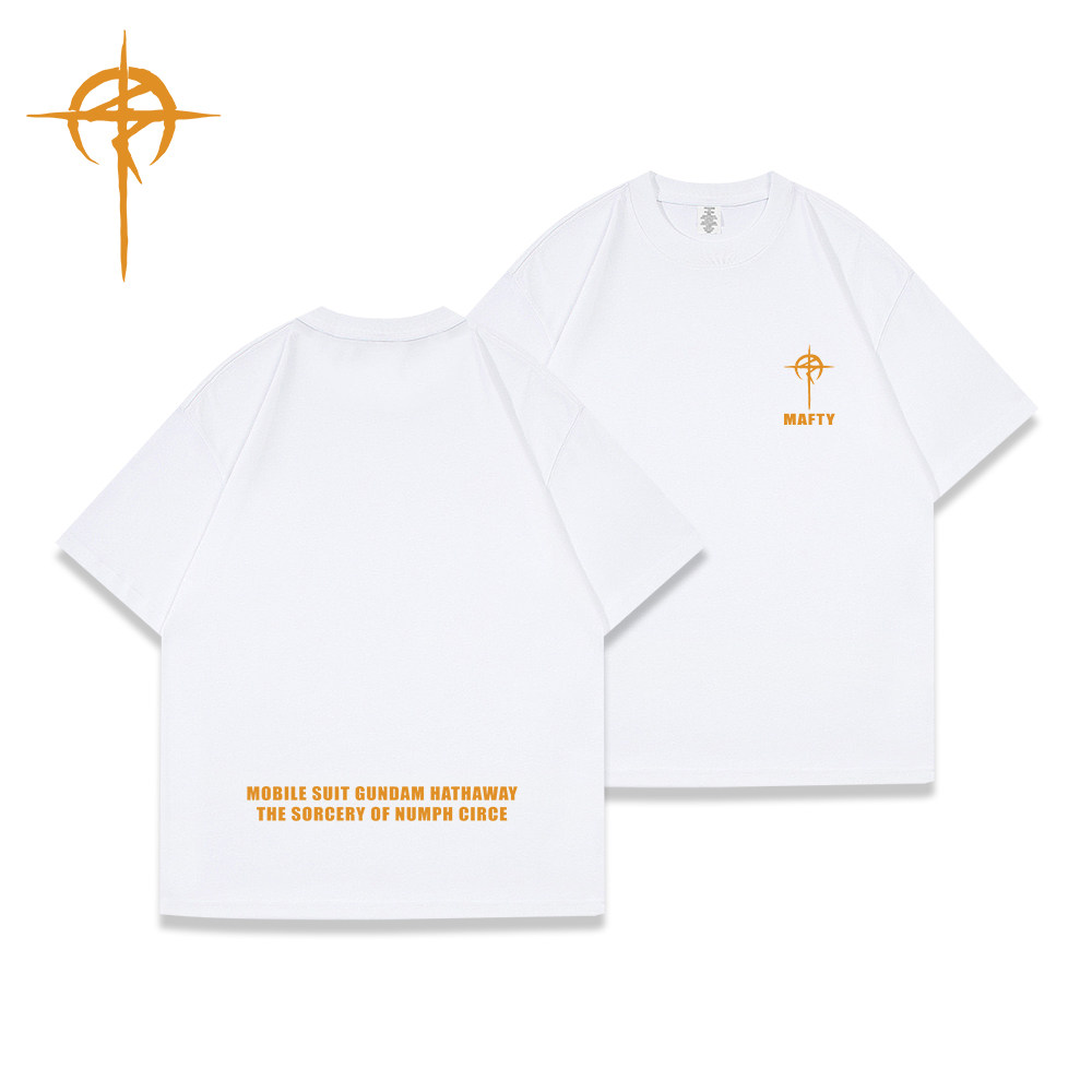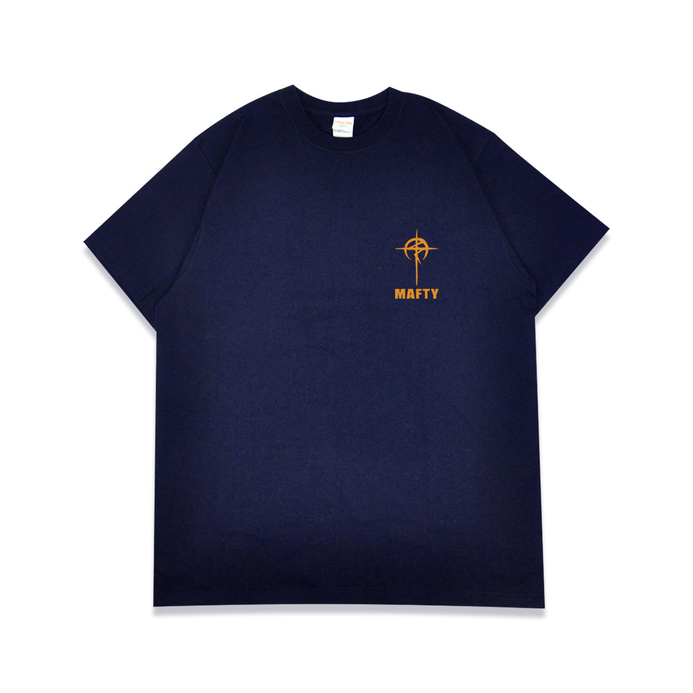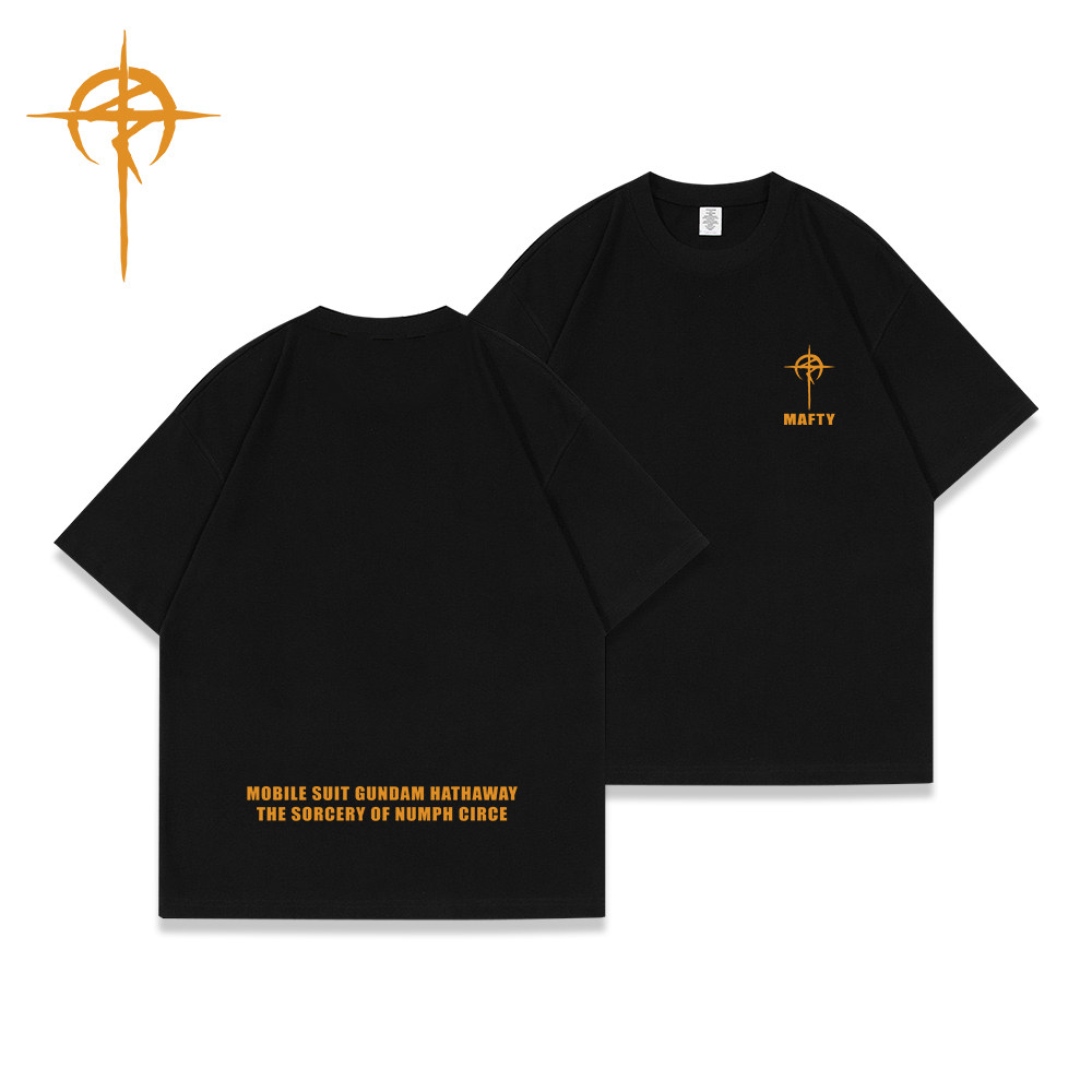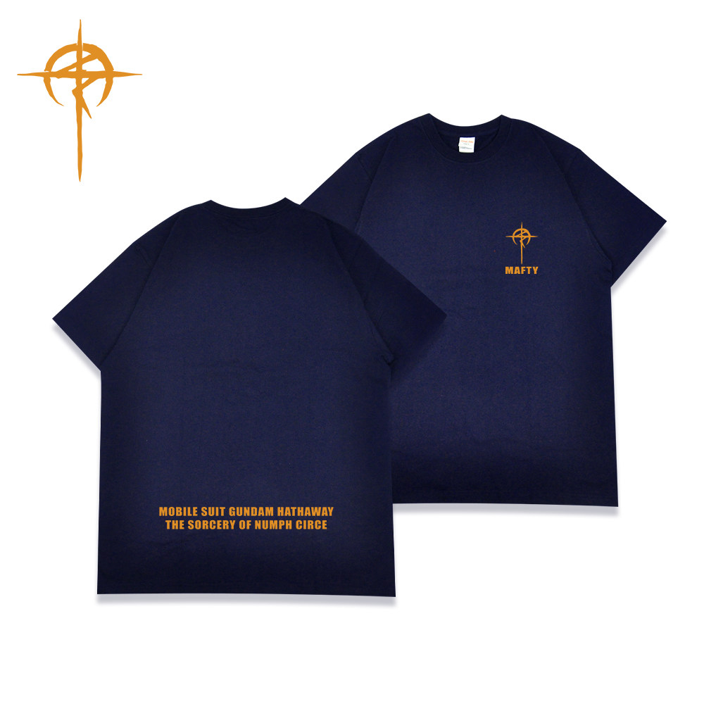 📚 机动战士高达MAFTY马夫蒂短袖T恤男女深蓝色圆领宽松印花纯棉上衣