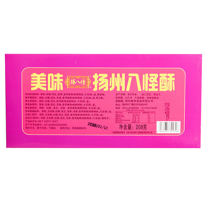 📚 老牌子扬八怪扬州八怪酥传统糕点组合东关街休闲办公零食盒装208g