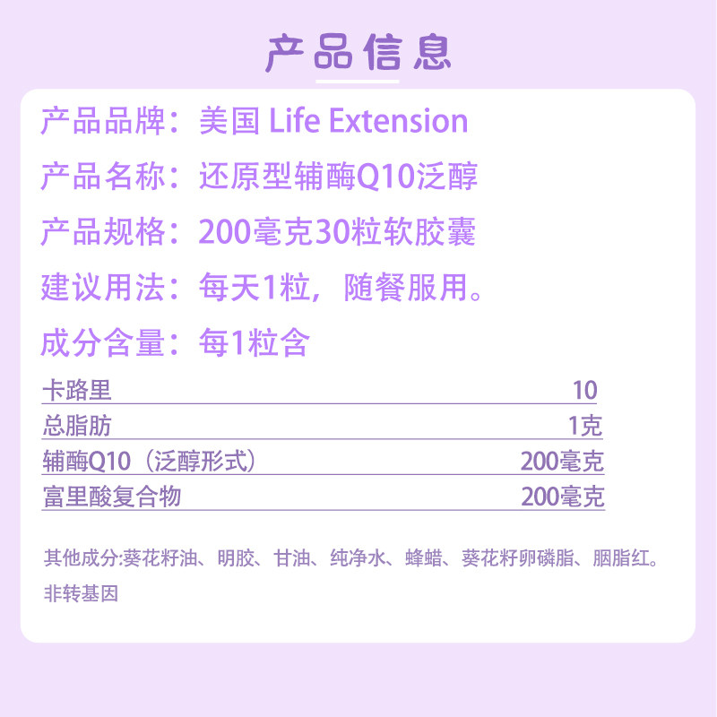 📚 高含还原型辅酶Q10泛醇含富里酸200mg30粒美国直邮Life Extension