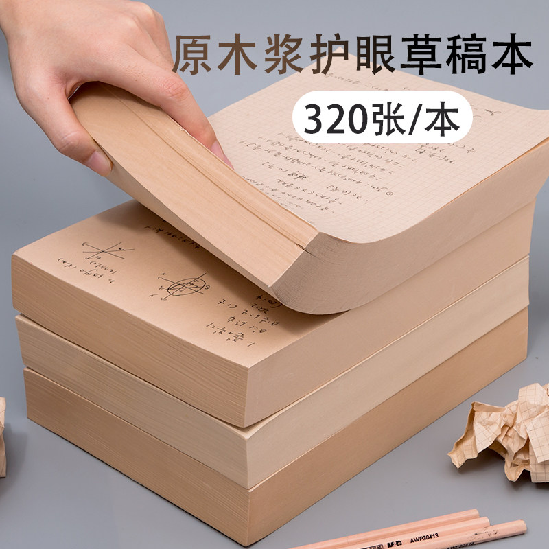 📚 超厚原木浆草稿纸空白草稿本本子小学生用大学生考研专用高中生初中生批发演草纸网格数学横线方格演算纸可撕