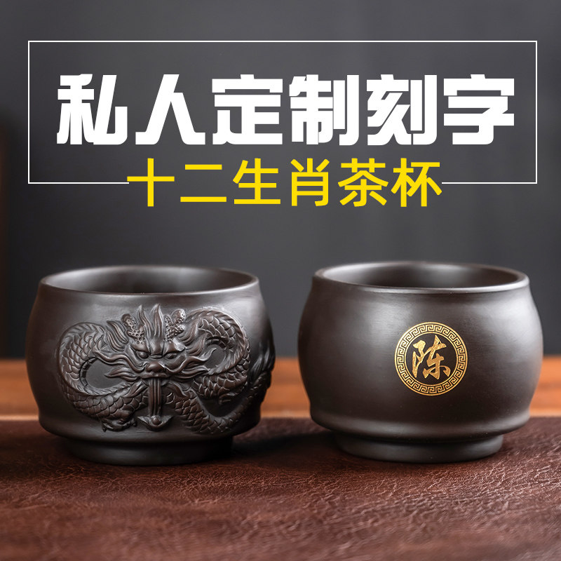 📚 私人定制百家姓紫砂十二生肖主人杯子喝茶杯品茗杯小茶盏茶碗刻字