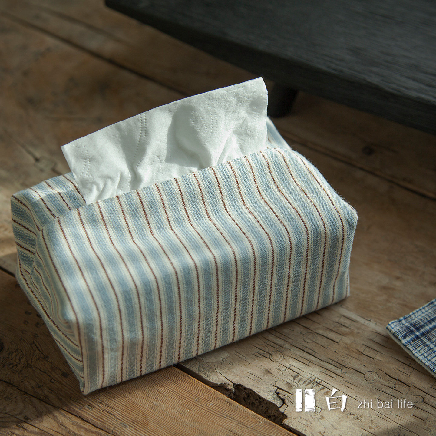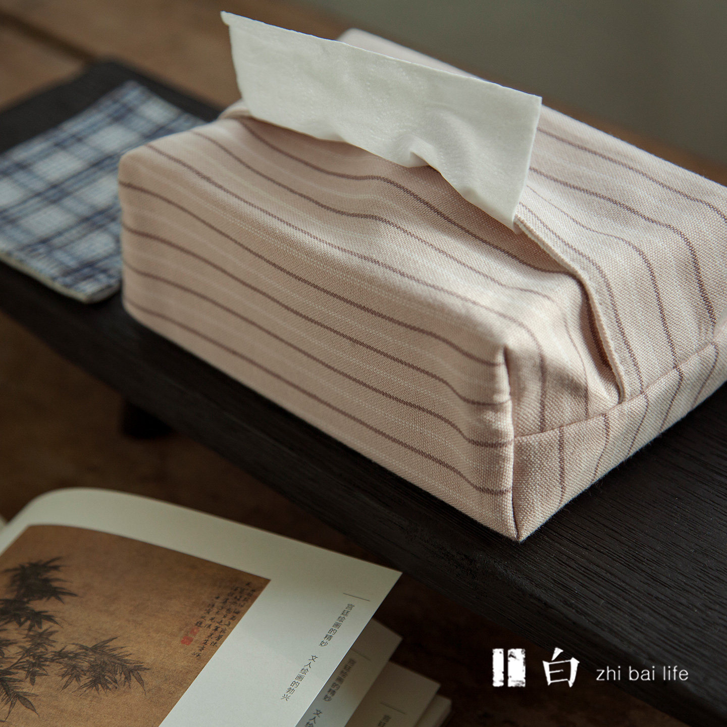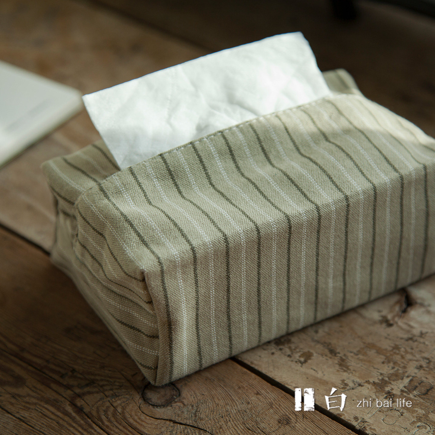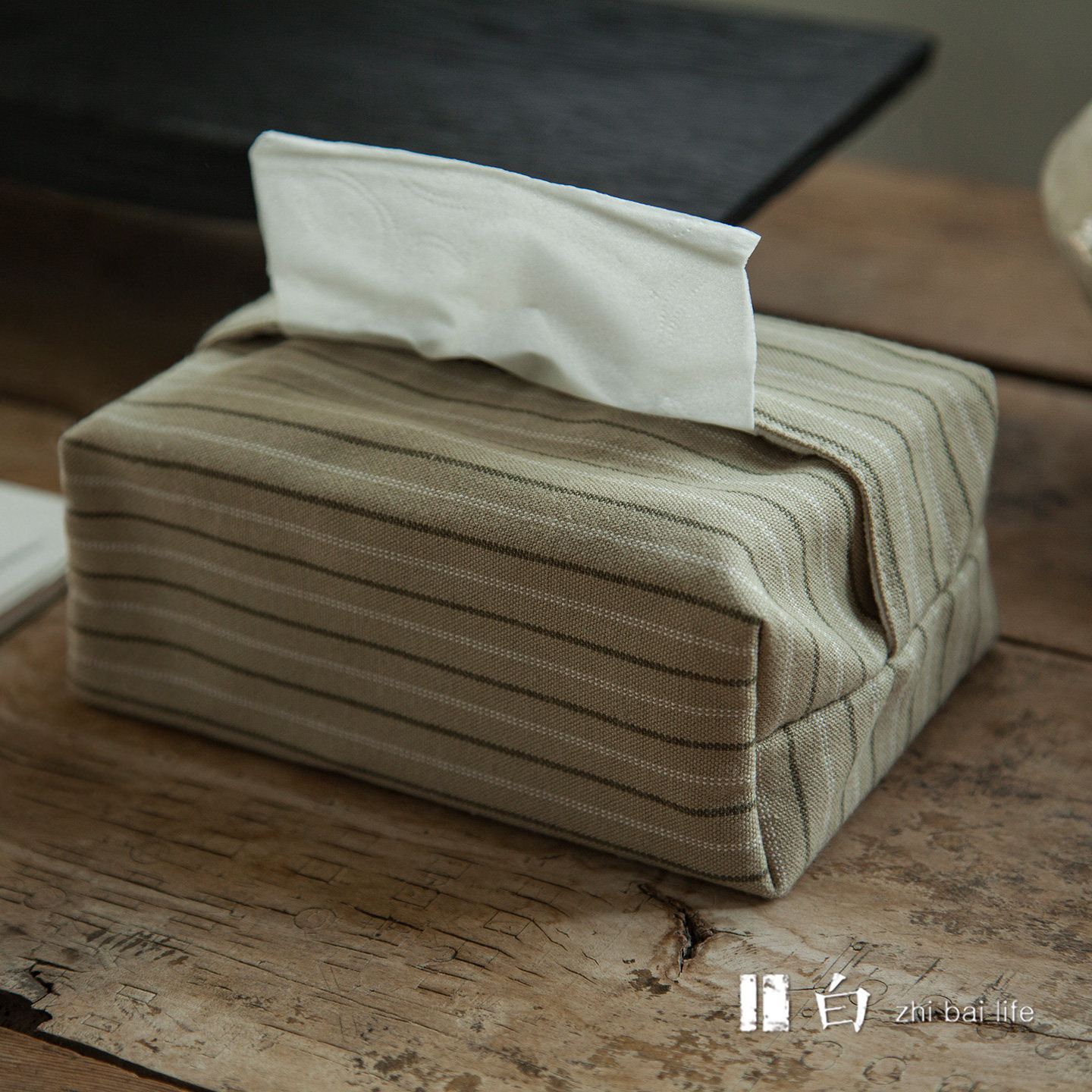 📚 手工条纹布艺纸巾套侘寂抽纸盒卧室纸巾袋中式棉麻民宿日式茶道