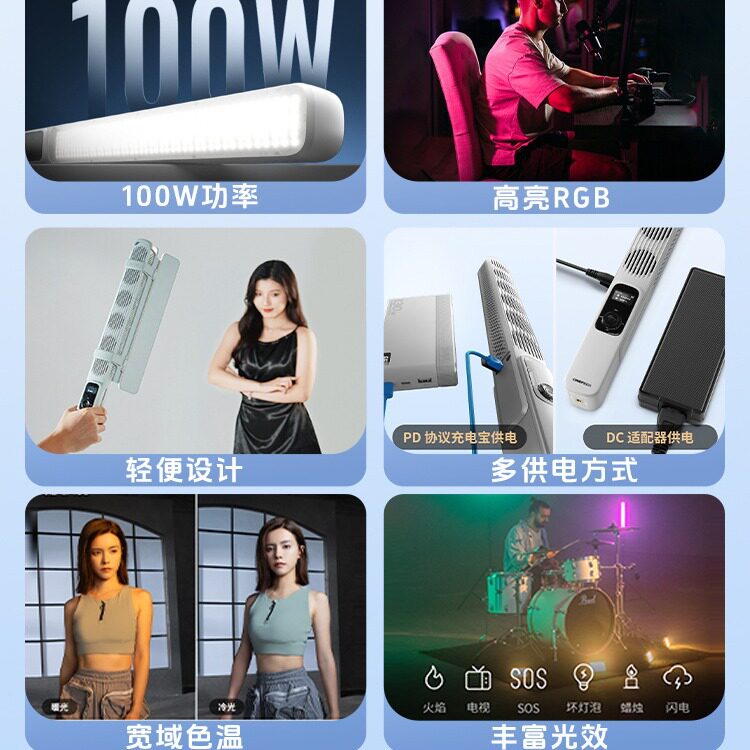 📚 智云 写趣CF100全彩RGB棒灯100W便携户外夜景人像拍照外拍手持led