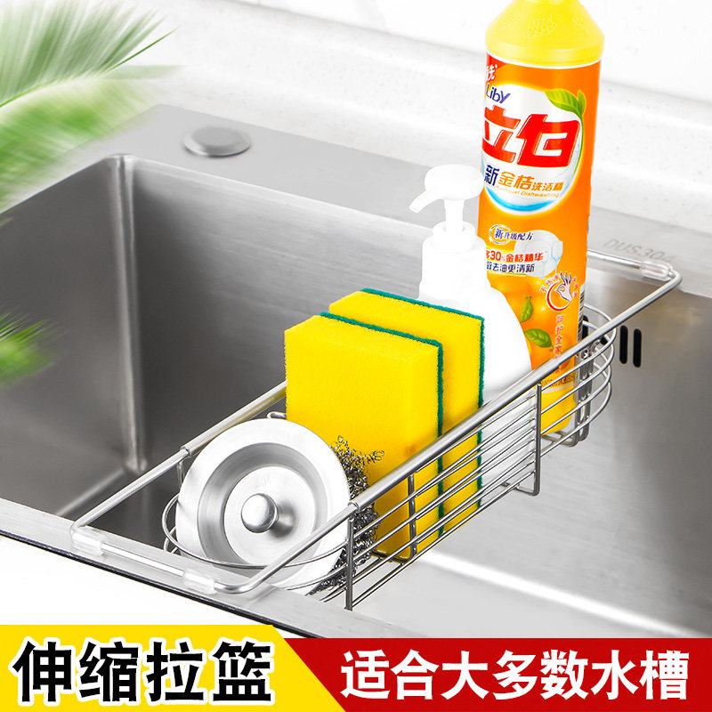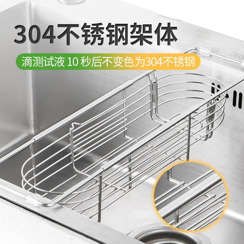 📚 厨房水槽伸缩沥水架不锈钢多功能洗碗海绵抹布架水池子置物收纳架