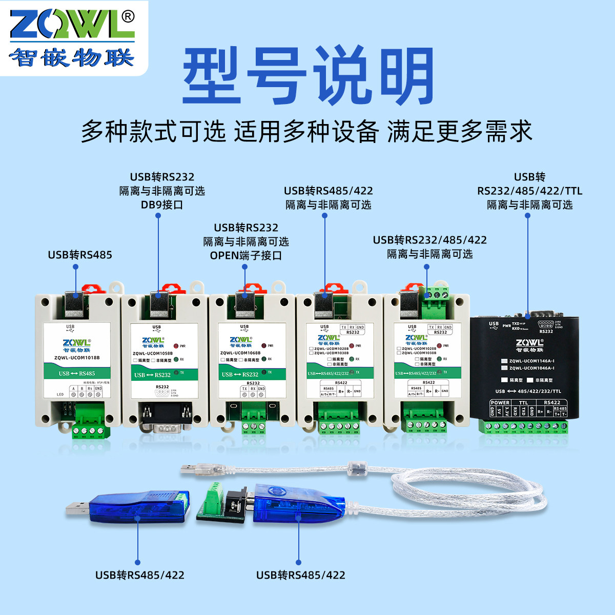 📚 智嵌物联USB转RS485转换器usb转232/422/TTL串口光电隔离模块进口FTDI芯片工业级