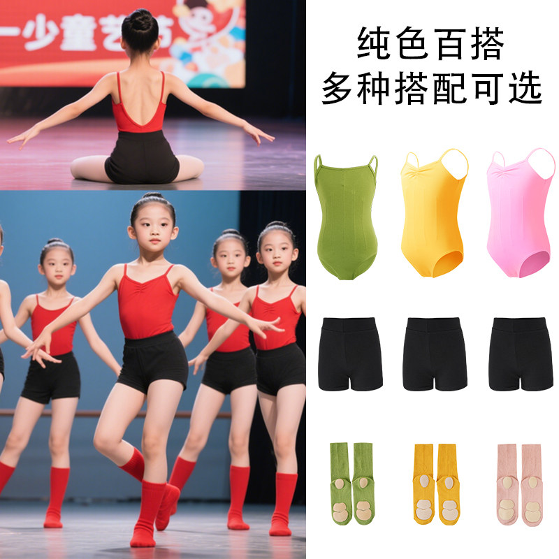 📚 儿童舞蹈服吊带练功服女童拉丁舞连体服套装夏季芭蕾舞形体训练服