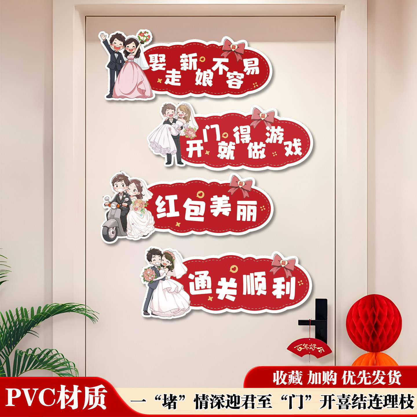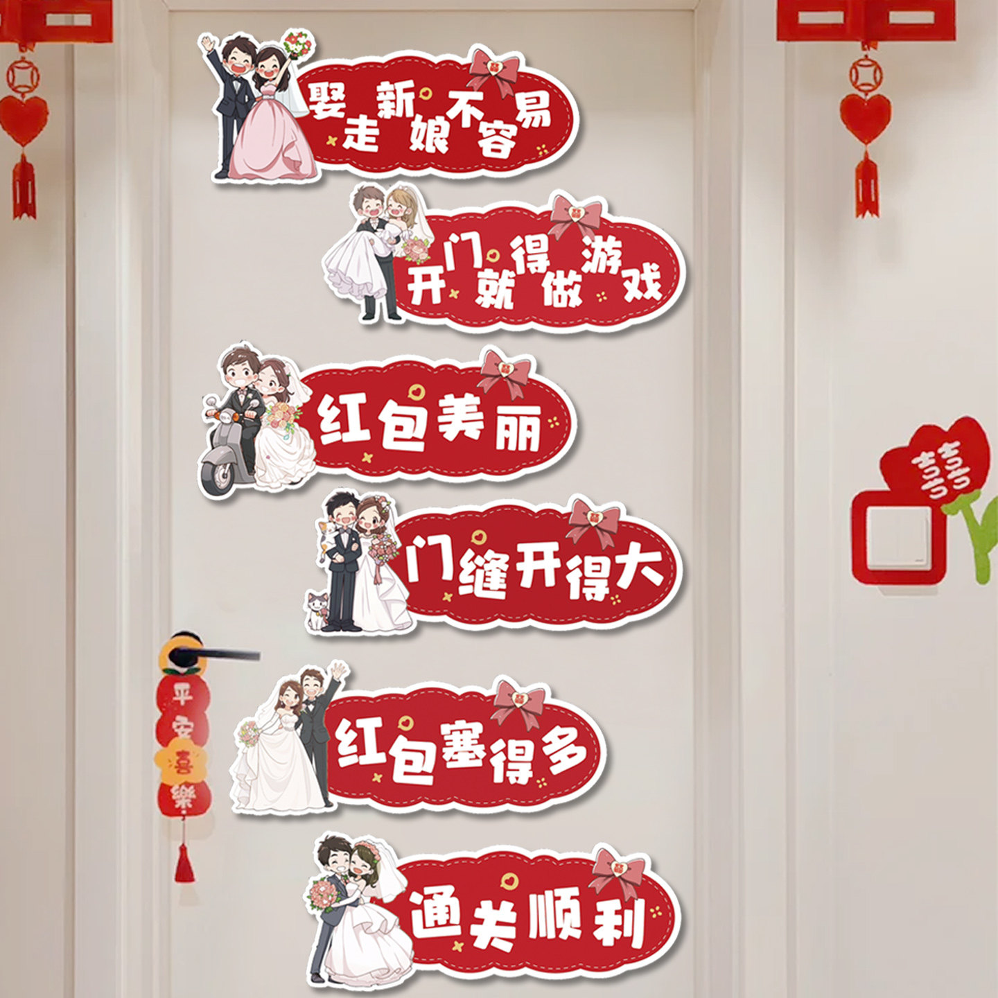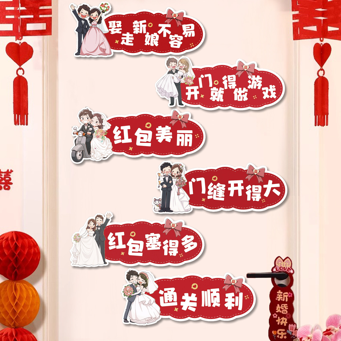 📚 创意接亲堵门门贴结婚婚房房门装饰拍照道具游戏喊话标语伴娘伴郎