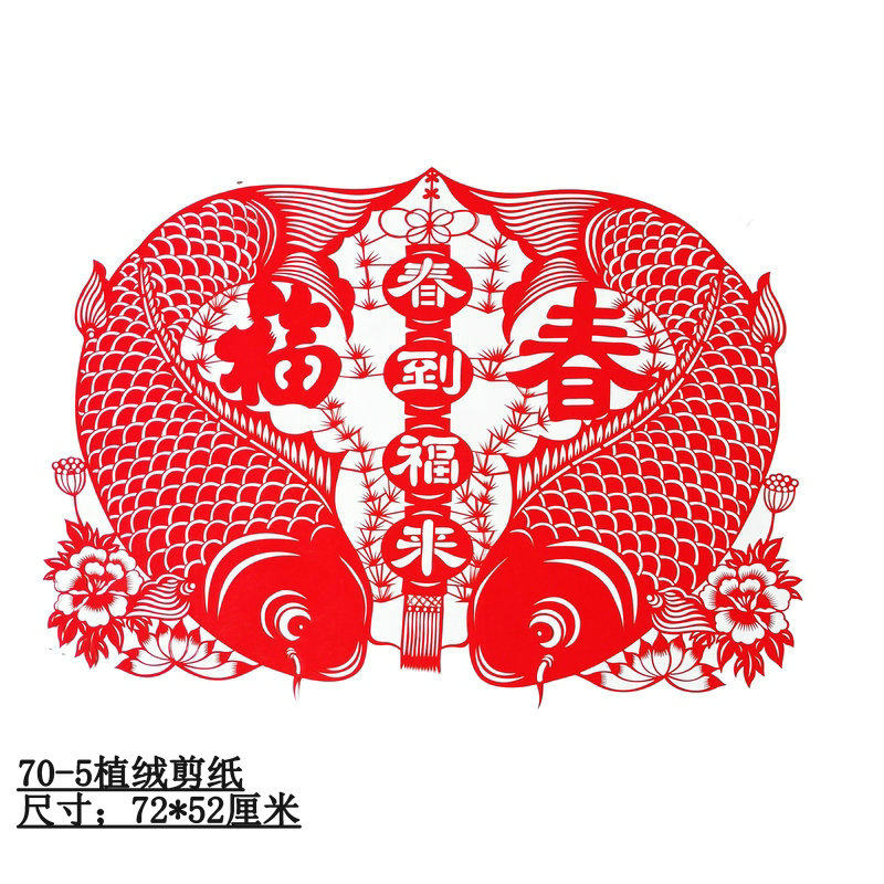 📚 春节年货装饰大号镂空雕刻手工植绒布玻璃墙贴剪纸窗花福字传统风