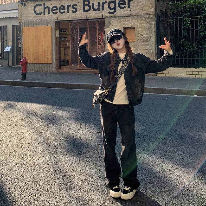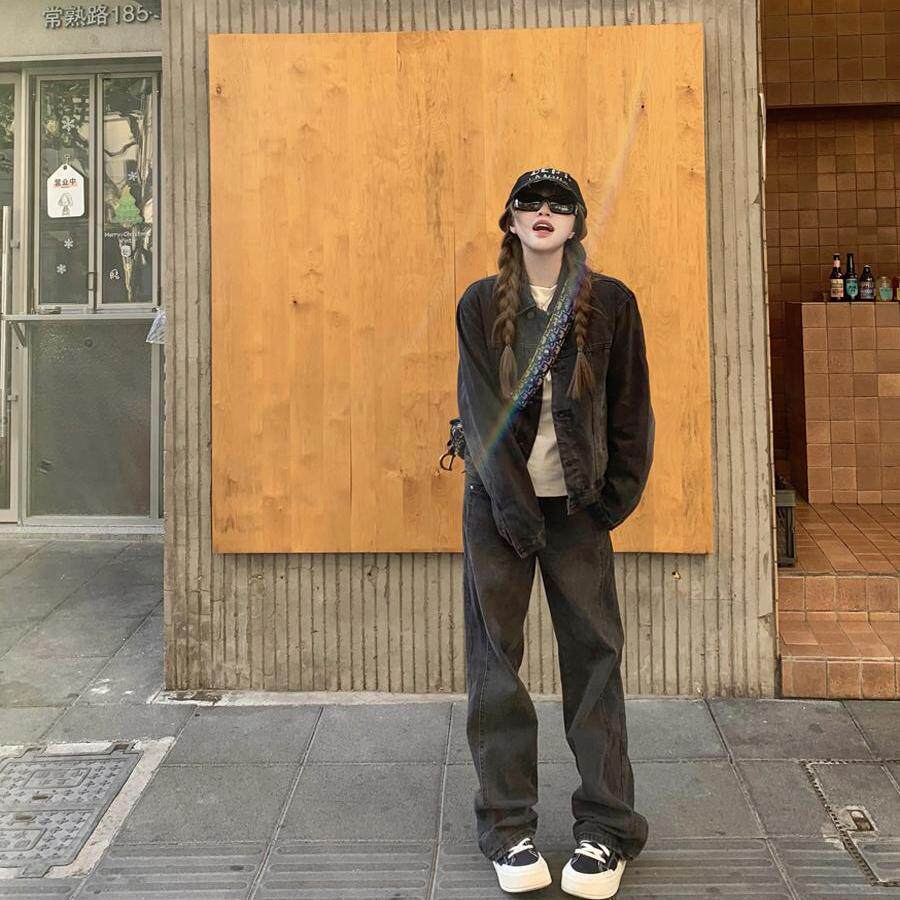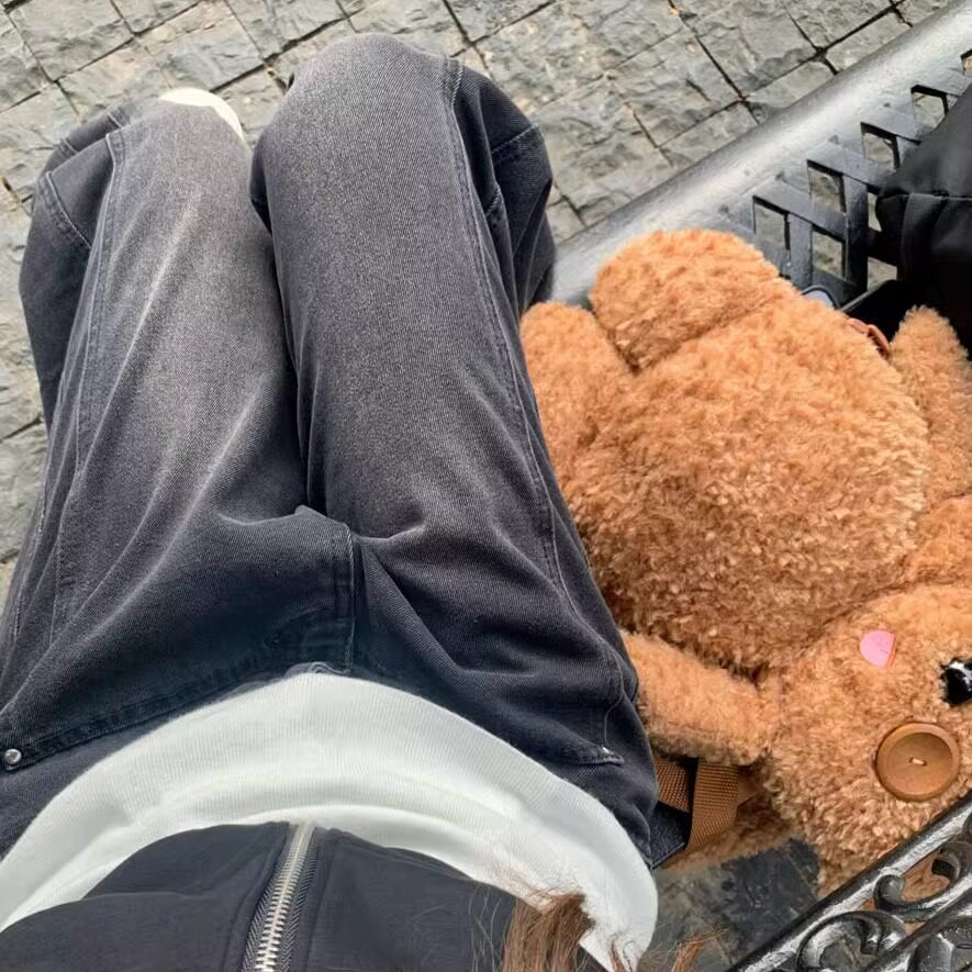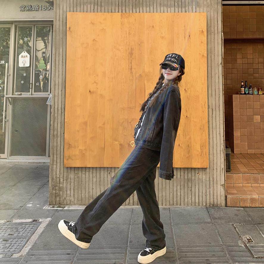 📚 罗诚意【梨形闭眼入神裤】高腰水洗黑灰直筒牛仔裤女宽松显瘦长裤