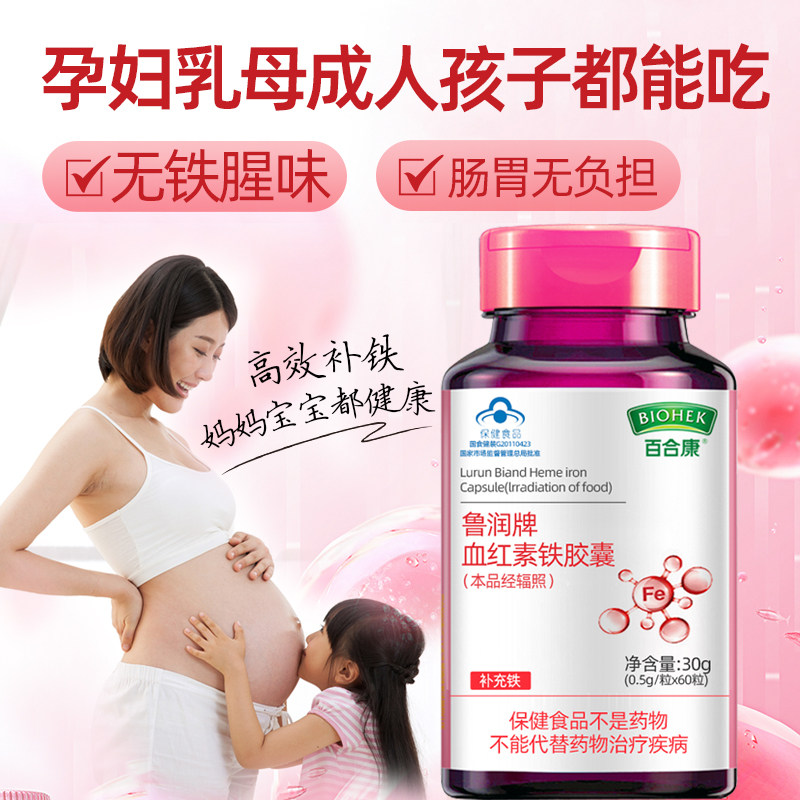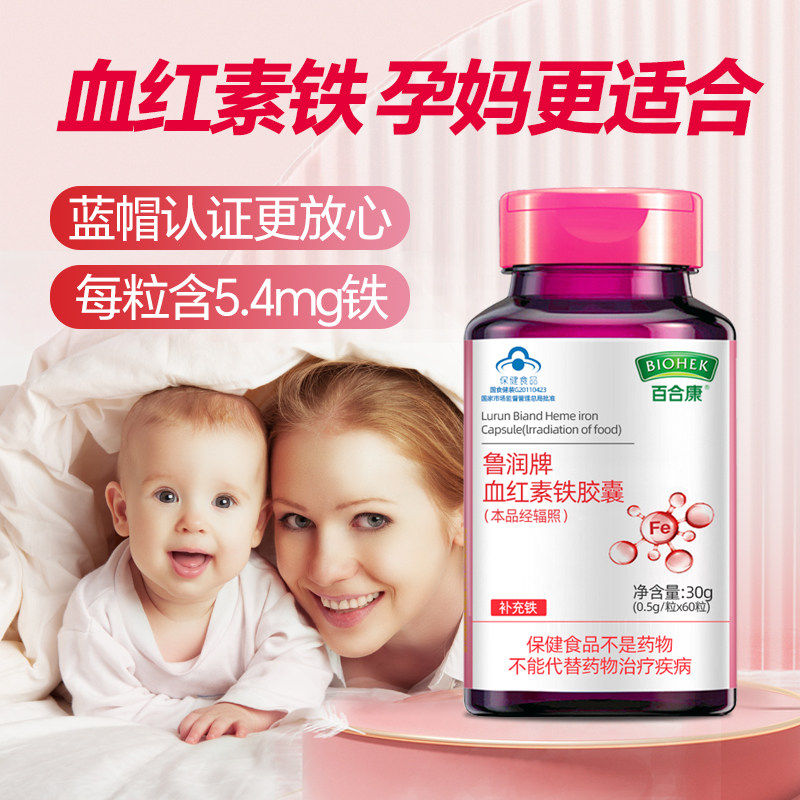 📚 百合康鲁润牌血红素铁胶囊60粒孕妇哺乳期儿童成人女补铁气血缺铁