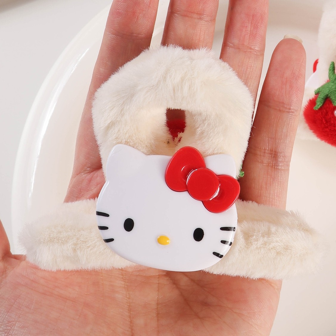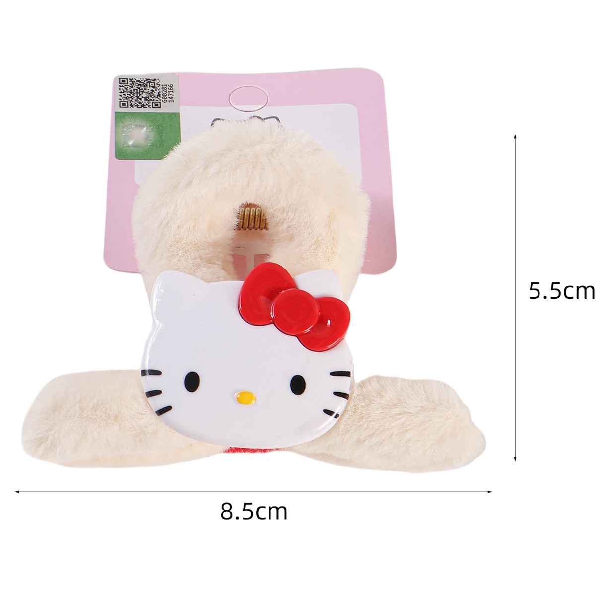 📚 哈喽kitty抓夹女童后脑勺盘发凯蒂猫毛绒鲨鱼夹 毛毛发夹kt猫头饰