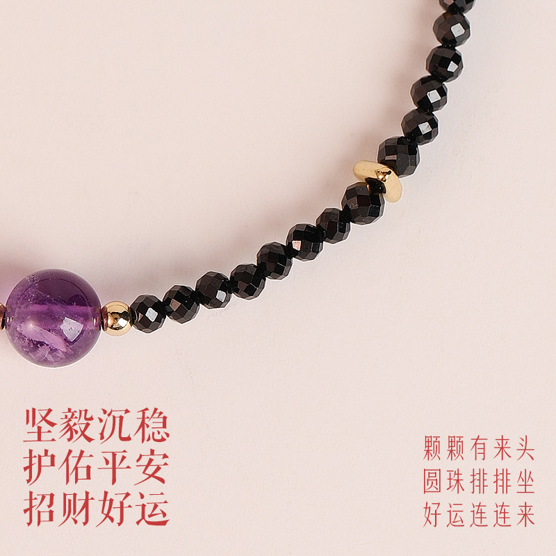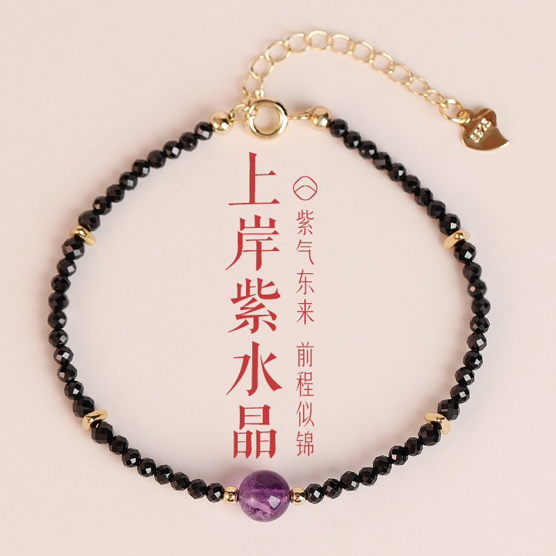 📚 普陀山黑尖晶手链女款黑曜石上岸紫水晶天然水晶手串小众精致细款