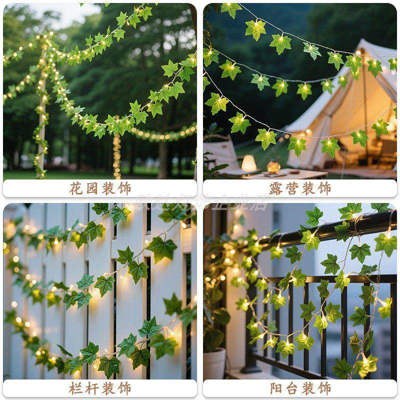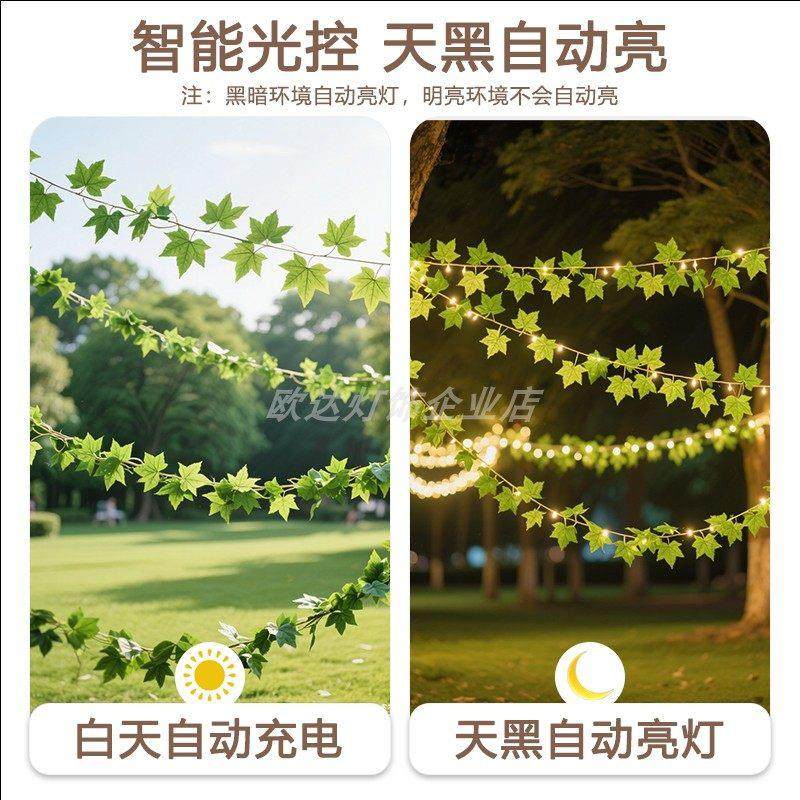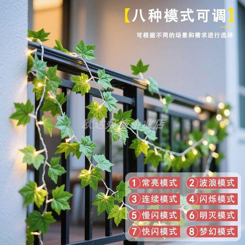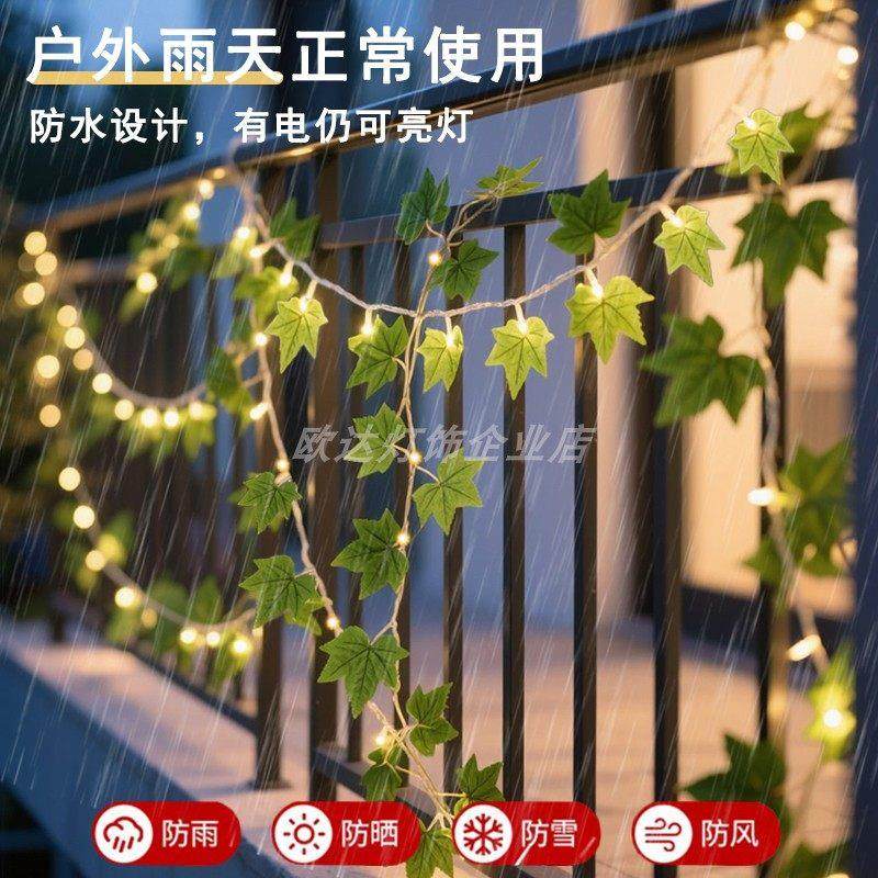 📚 太阳能户外防水灯绿枫叶庭院布置灯装饰小院围栏花园阳台气氛灯串