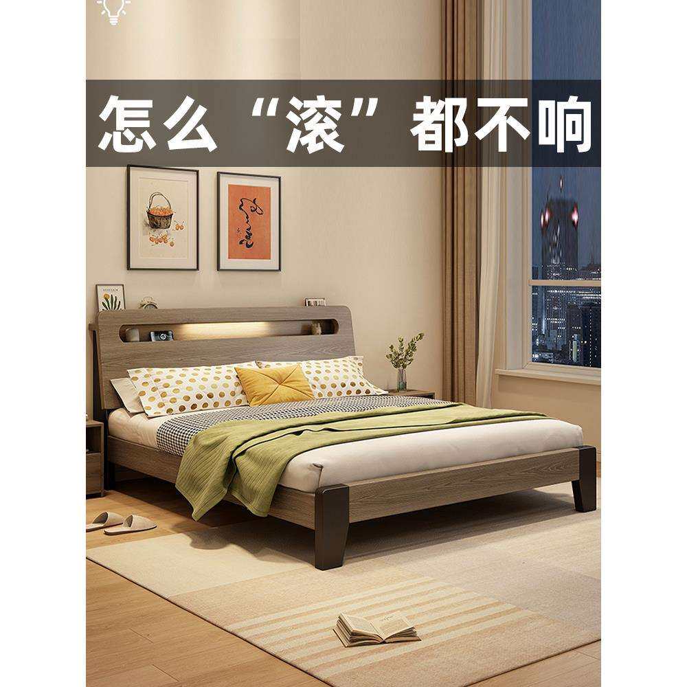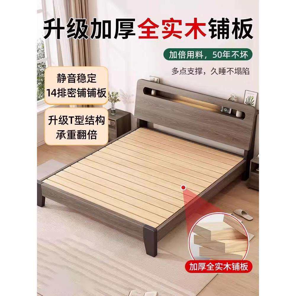 📚 床实木现代简约1米8双人床出租房用小户型1米2单人床成人家用大床
